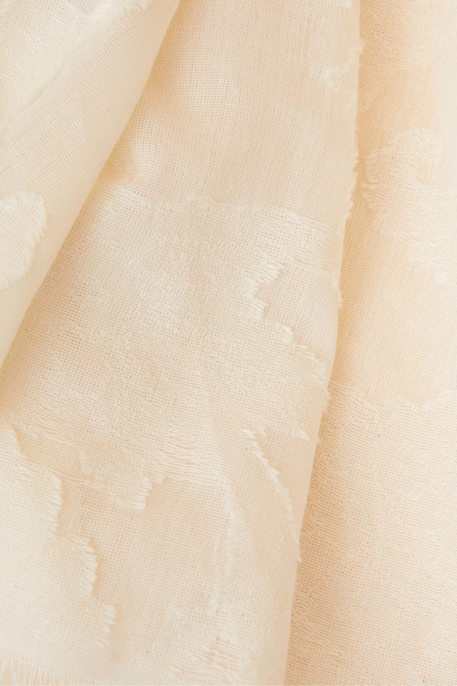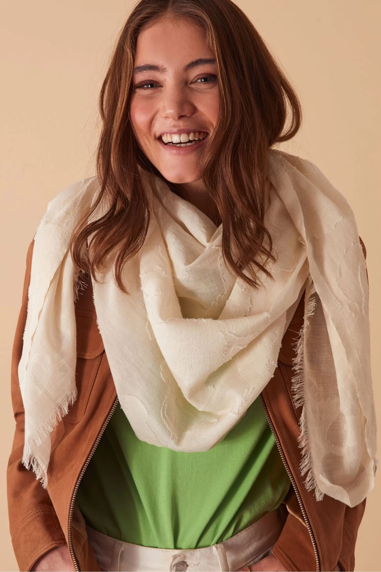A light accessory for the winter chill, this scarf is finished in a glamorous burnout fabrication with a chic black backdrop.
