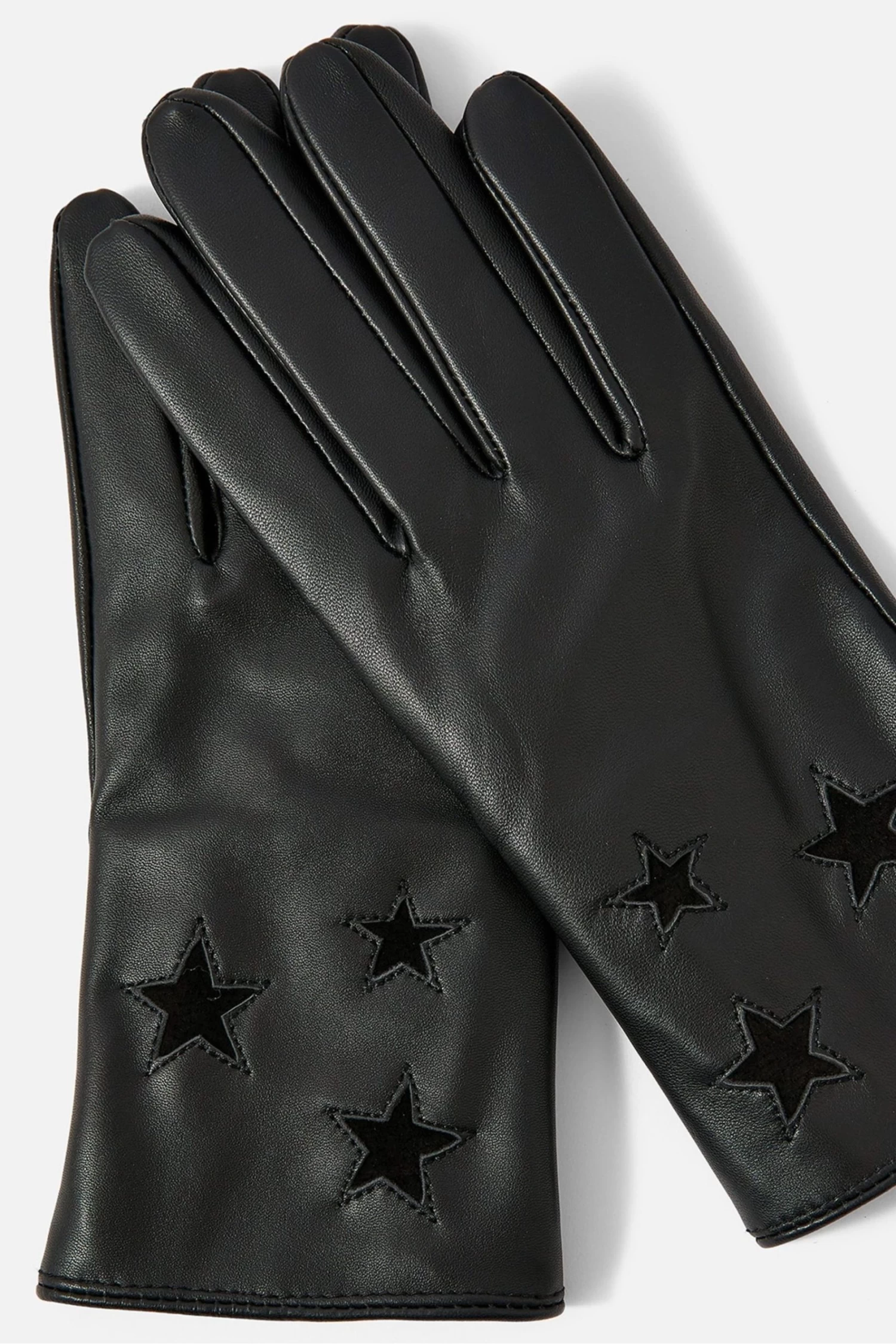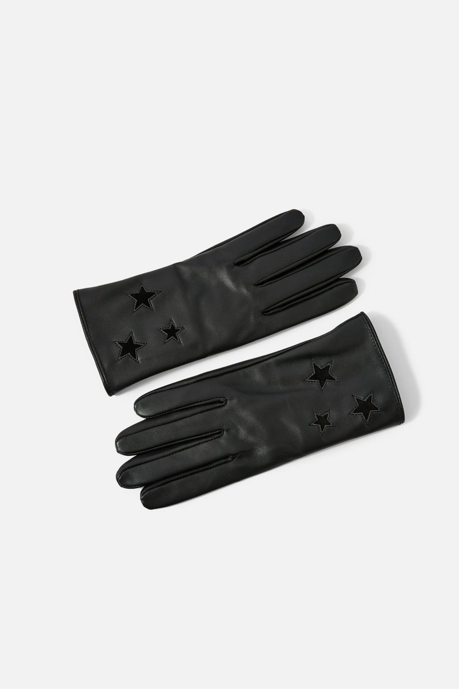 A luxe addition to your cold weather line-up, these gloves are fashioned in real leather with embroidered star detailing and a soft lining.