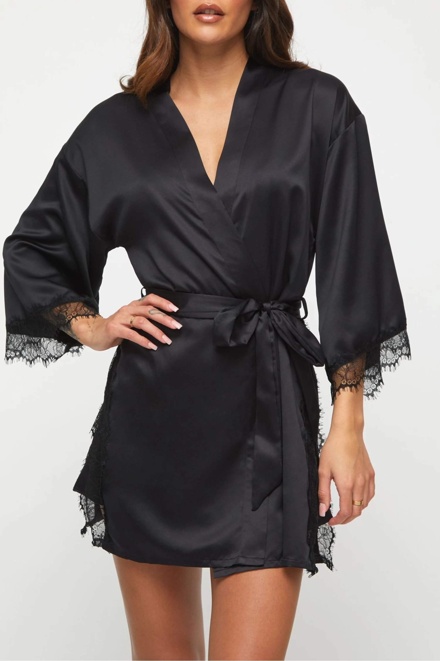 The black Cherryann robe is a staple part of the Ann summers planet collection – to do some good whilst feeling great. This robe is a classic knee-length wraparound with eyelash trim details on the flowy sleeves and side split at the thigh. Finished with a satin belt, pair yours with the Cherryann Chemise for a seductive night in.