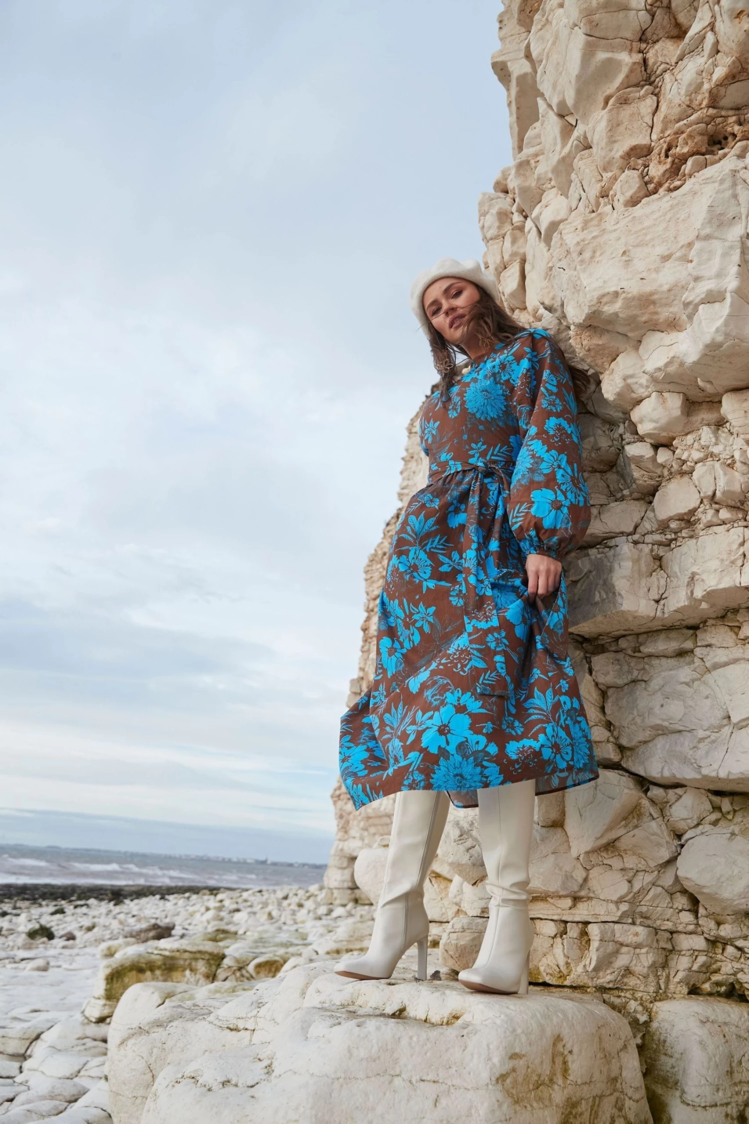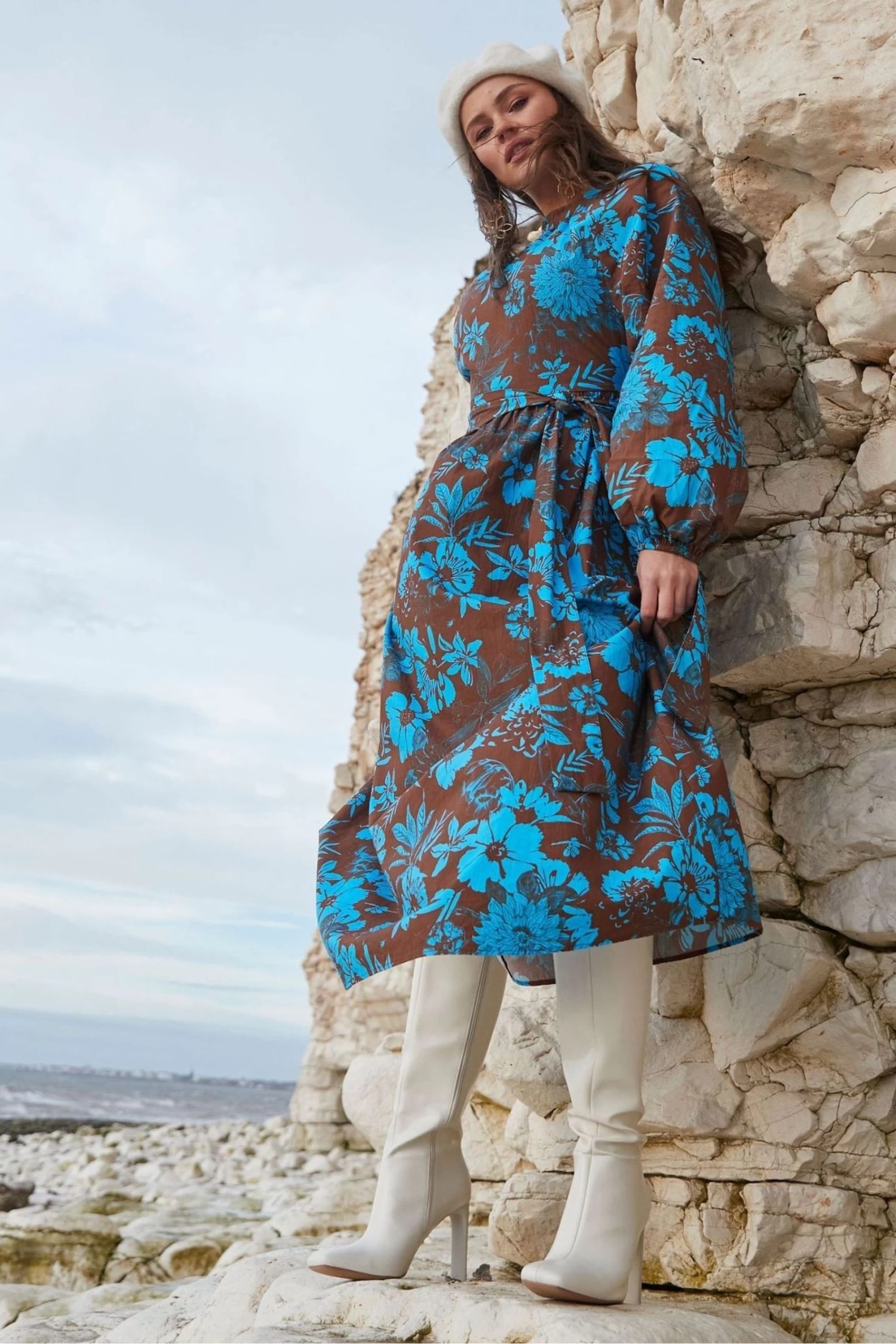 Made in the dreamiest print this dress is elegant, feminine and the perfect dress for any occasion. The chocolate & blue floral print makes this dress versatile to sit back into your wardrobe whether pairing it back with heels or for a relaxed look in boots. It has a high neck with tie-back detail, an open back that still offers coverage & self-tie belt for you to cinch in the look. This is one of our must-have shapes for this season and is the perfect dress up and down dress.