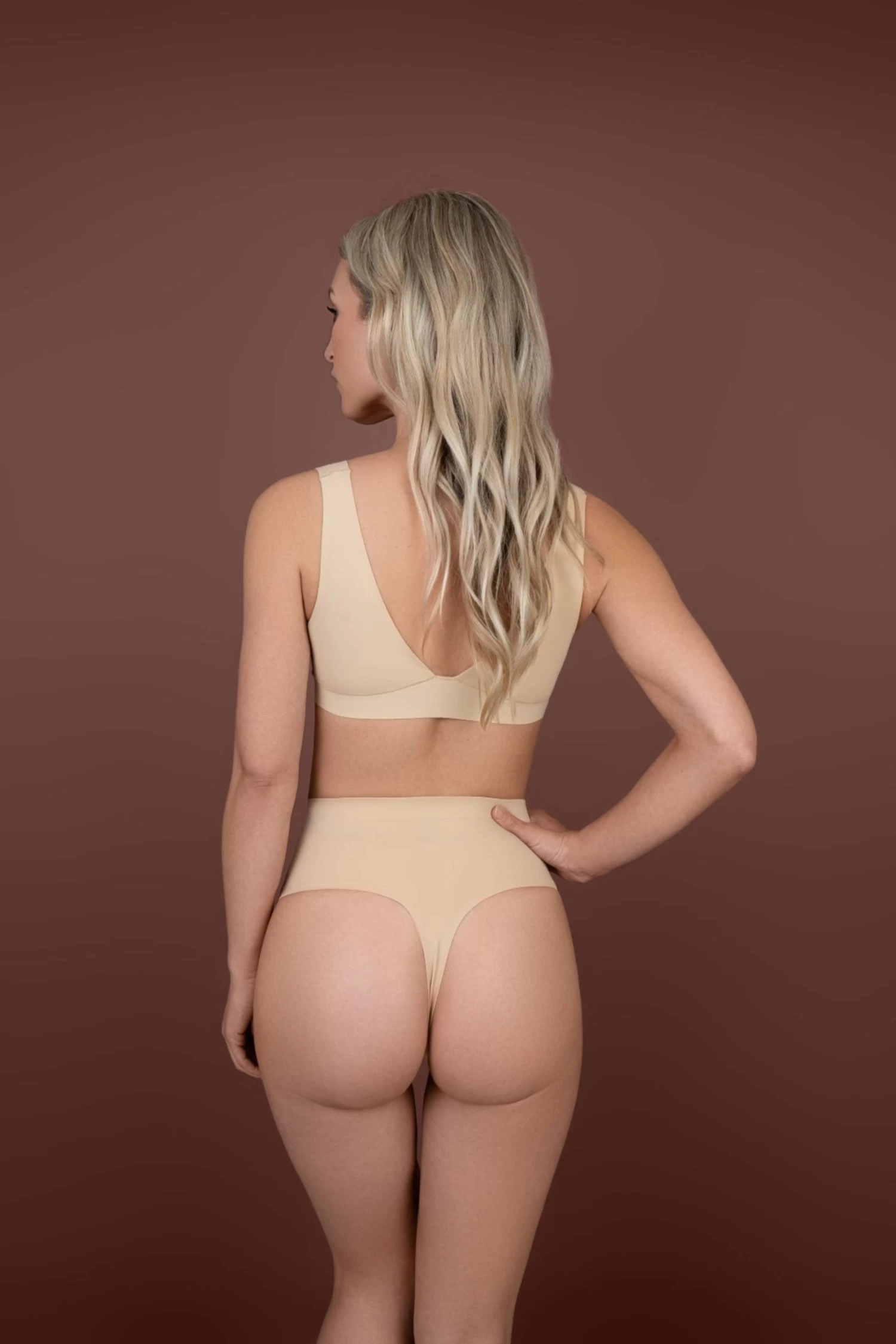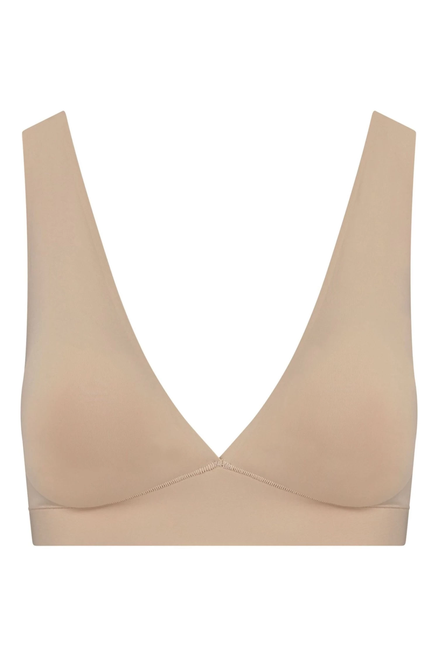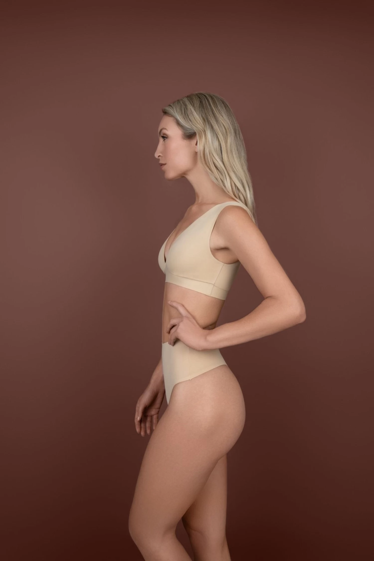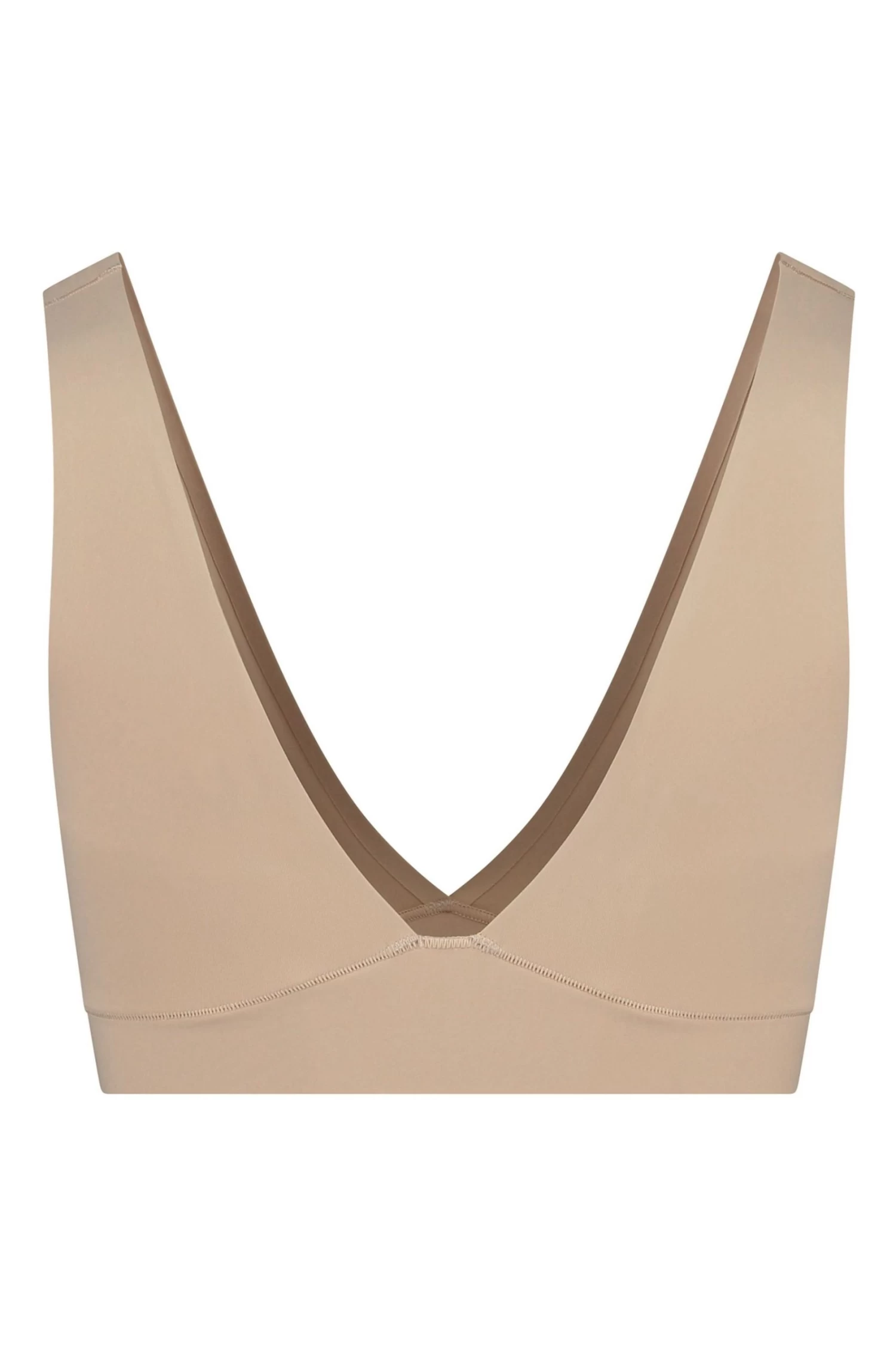 The bra top has a deep front and back design, which can be worn with high or low-waist clothing. The Deep Plunge Bra Top is wire-free and provides good underbust support. Wide shoulder straps and removable padding are there to provide that extra comfort while wearing The Deep Plunge Bra Top.