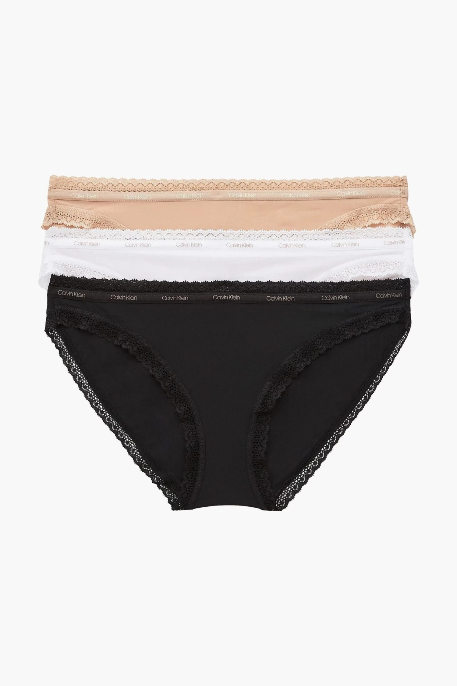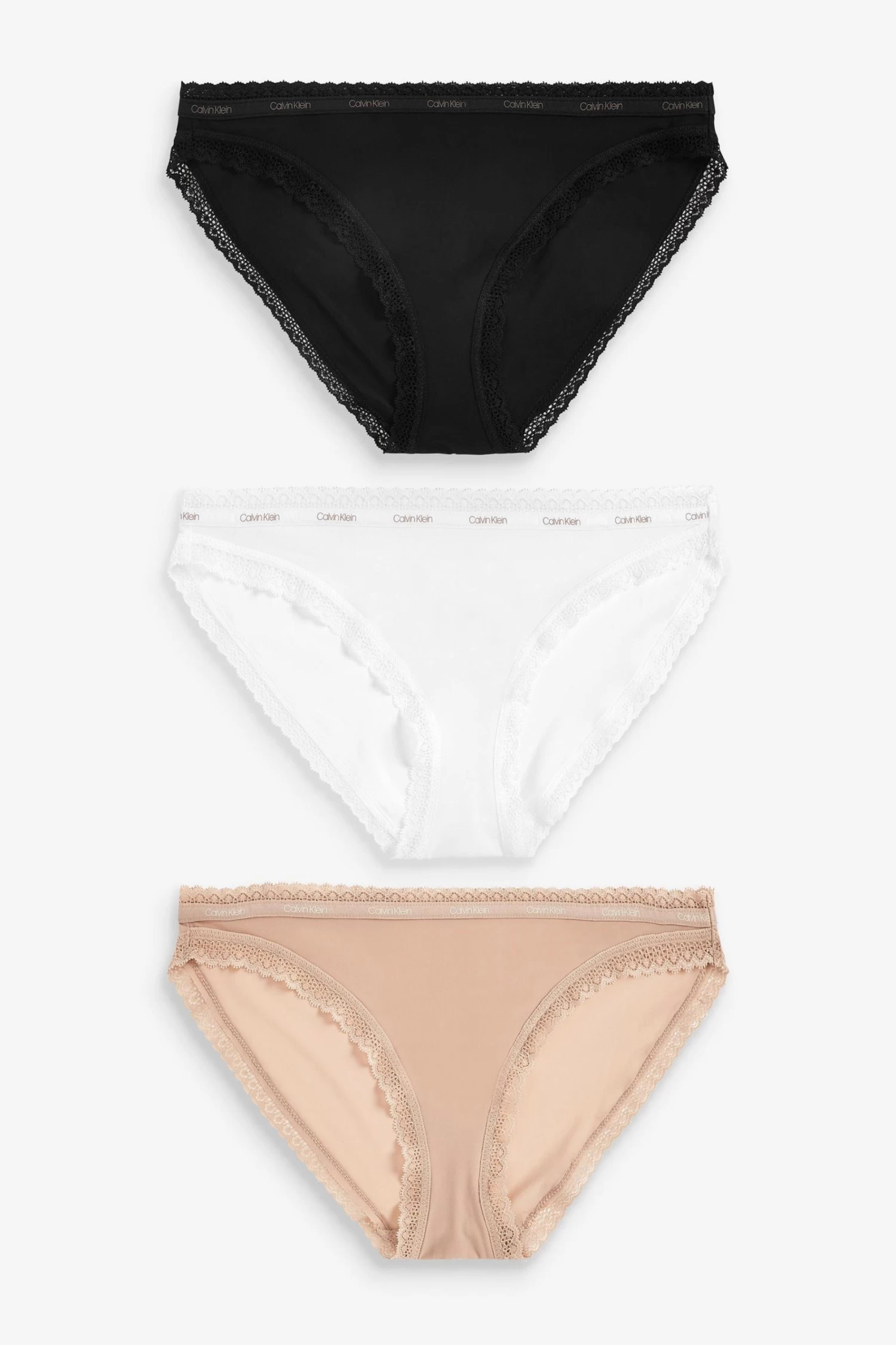 Refresh your underwear drawer with this essential three pack. The set includes the signature Calvin Klein bikini briefs each in classic staple shades. Made from a soft and lightweight material for guaranteed comfort and discretion.