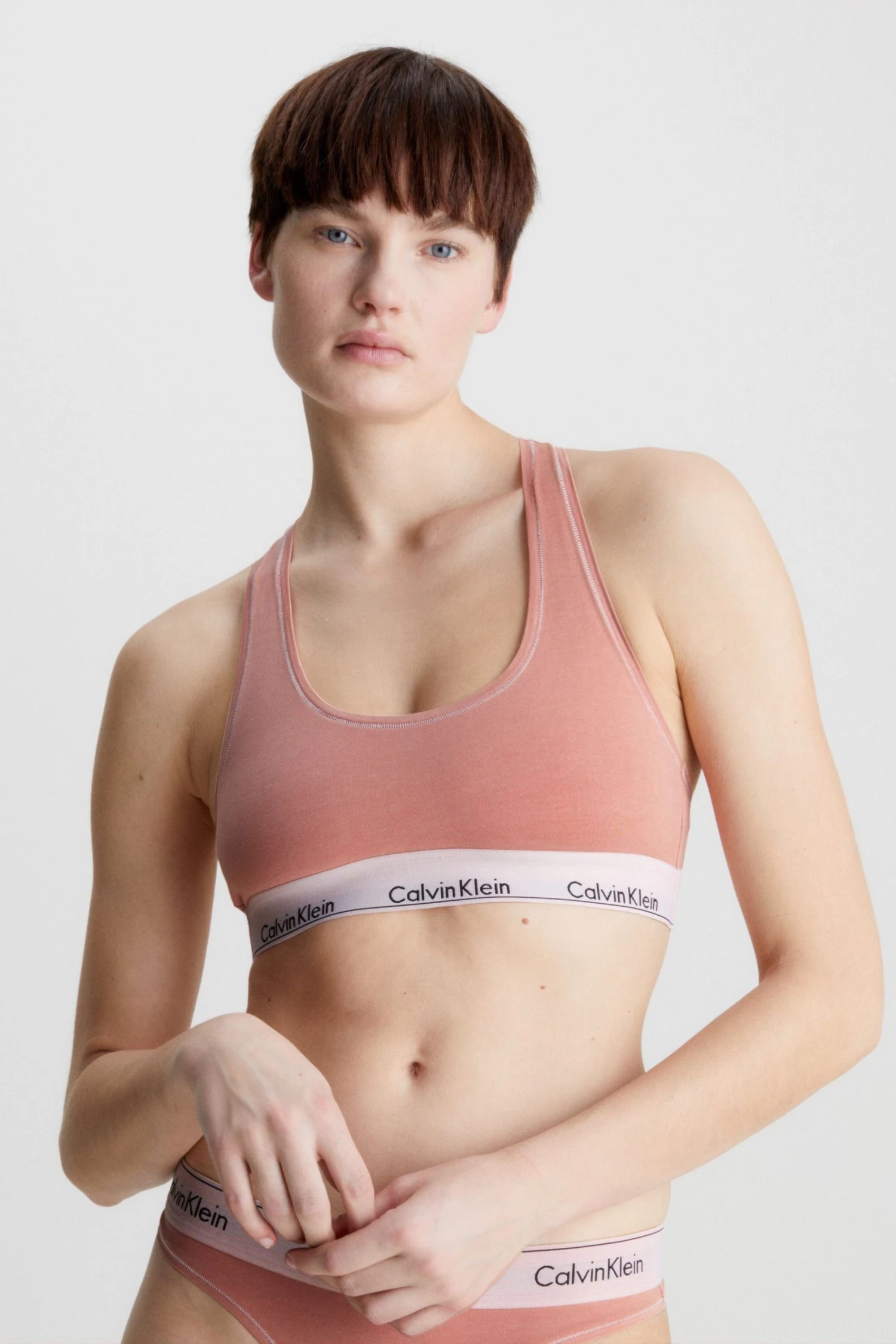 A signature Calvin Klein style, this unlined bralette features a racer back style with bold logo elasticated underband for a branded statement. Made from a stretchy cotton jersey for everyday comfort, with a sustainable mineral dye fabric.