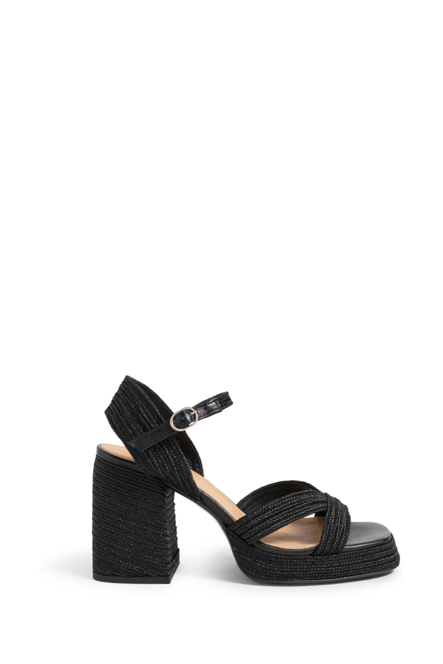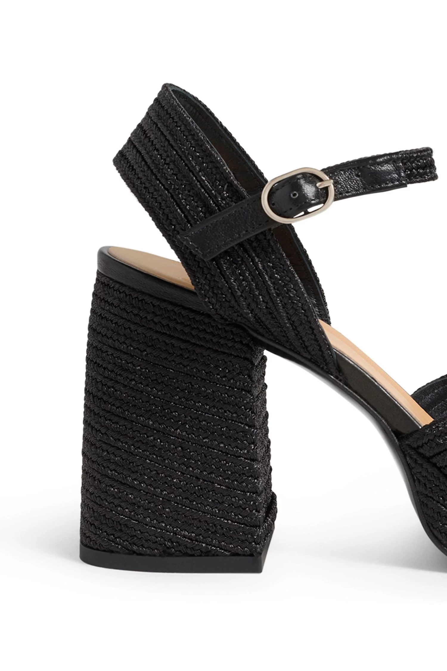 Valle is a medium block heel sandal with an adjustable strap. It is crafted in braided cotton and is finished off with a leather sole.