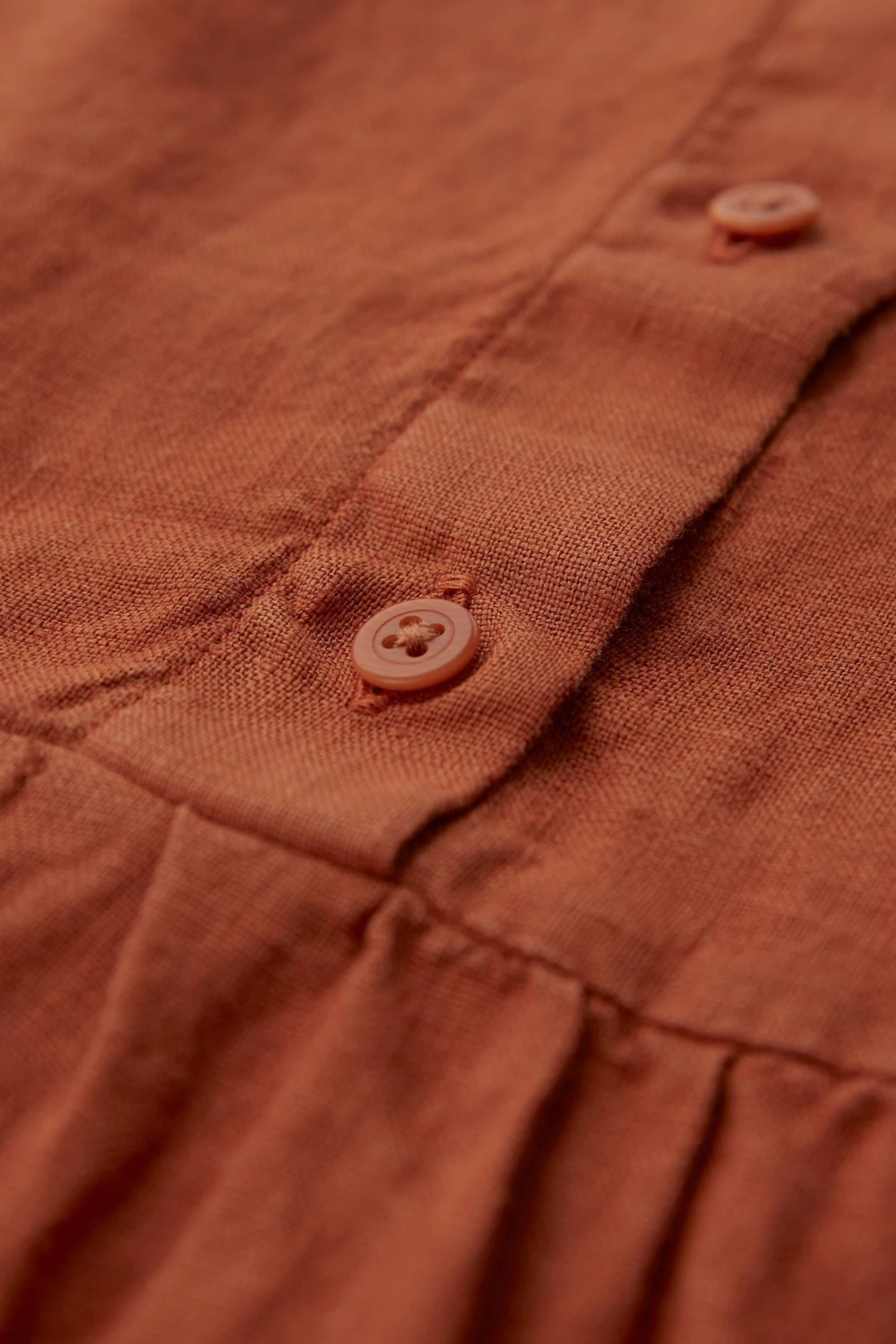 A dress that you’ll reach for over and over again. This airy midi dress is perfect for spring and summer days when the sun is shining. Created from light and breathable linen, it features pockets on the hips, a button-through bodice, gathering at the waist seam and a skimming silhouette. Due to the unique dying process, each garment may differ, creating a natural, beautiful and individual look.