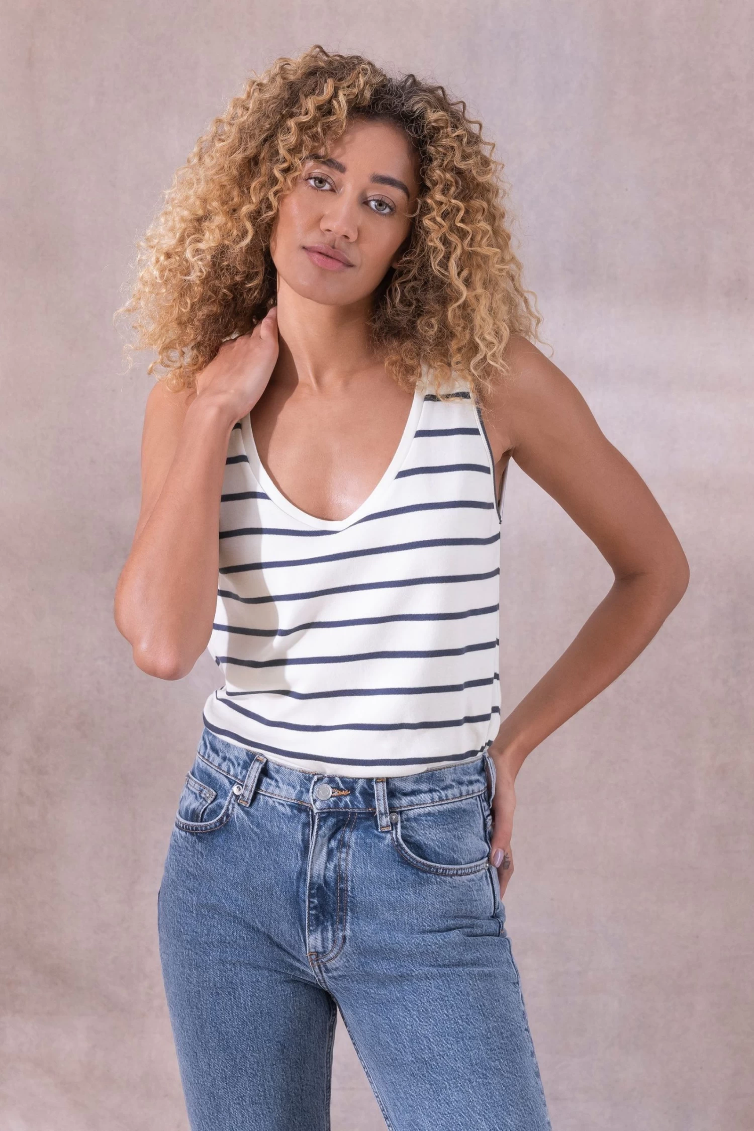 A wardrobe staple, our V-Neck Vest Top features a deep v-neckline at both the front and back. Made from organic cotton, the brushed surface adds extra softness. With a slimmer fit, this top can be worn alone or layered, and it pairs well with any outfit. The casual style and cut looks great with both shorts and jeans, and it’s pull-on nature goes hand in hand with it’s wearability.