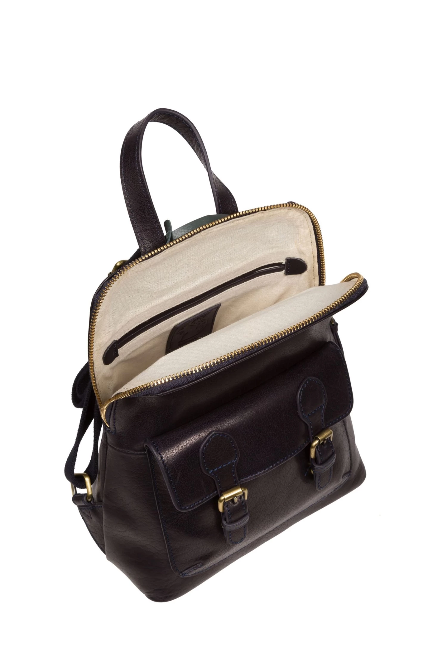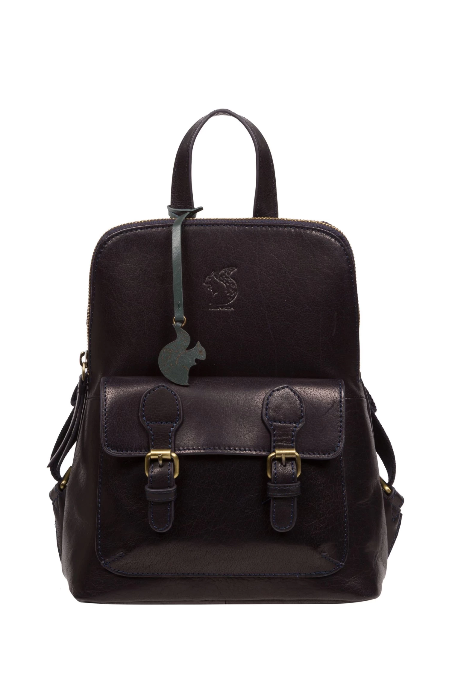 Part of the Conkca Originals collection, featuring classic designs reinvented with contemporary craftmanship, the Kendal backpack is handcrafted from genuine leather for a beautiful finish. With a zipover top securing a beautifully lined central compartment and two interior pockets, ideal for a smart phone and keys. External storage is provided with a spacious front pocket featuring a magnetic clasp concealed under a mock-buckle design, perfect for when you are on-the-go. Finished with adjustable fabric shoulder straps and leather grab loop for comfortable wear and adorned with the inimitable Conkca squirrel charm for a touch of luxury.