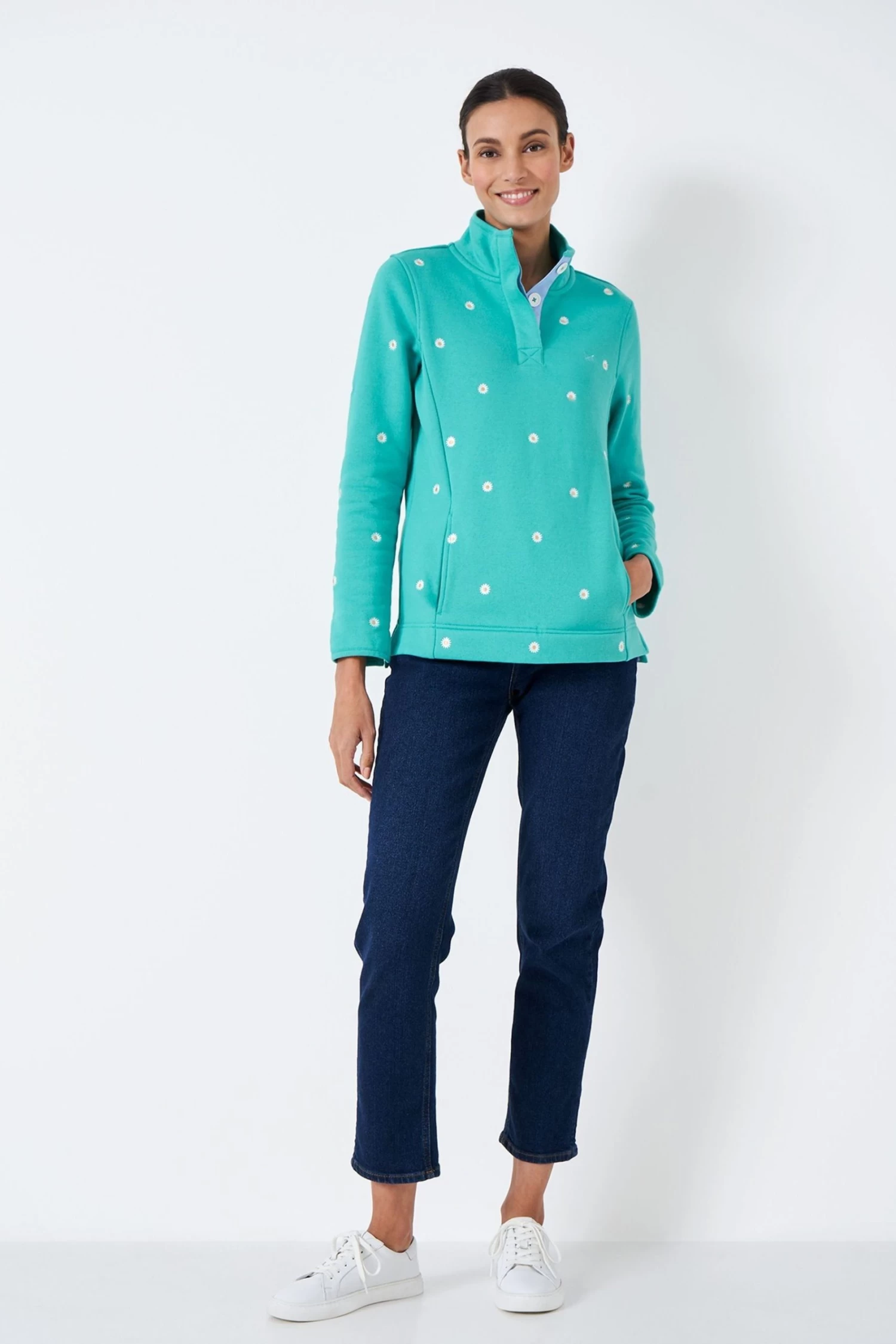 A half-button sweatshirt in blue. Why do we love this jumper? The funnel neck will keep you oh-so cosy and the Crew touches finish off the design nicely. Throw over a long sleeve top for walks by the coast. Branded buttons and Crossed oars are embroidered on the chest
