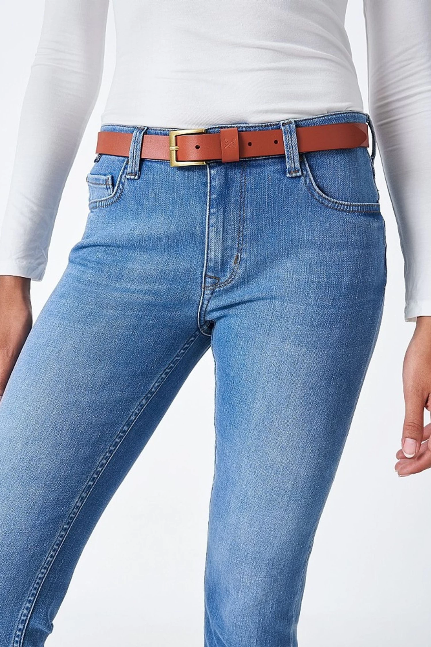 A classic belt. Made in the UK from the finest quality leather. The perfect finishing touch. Featuring an antique gold buckle and 100% leather. Fits true to size when worn at the hips. Do not wash.