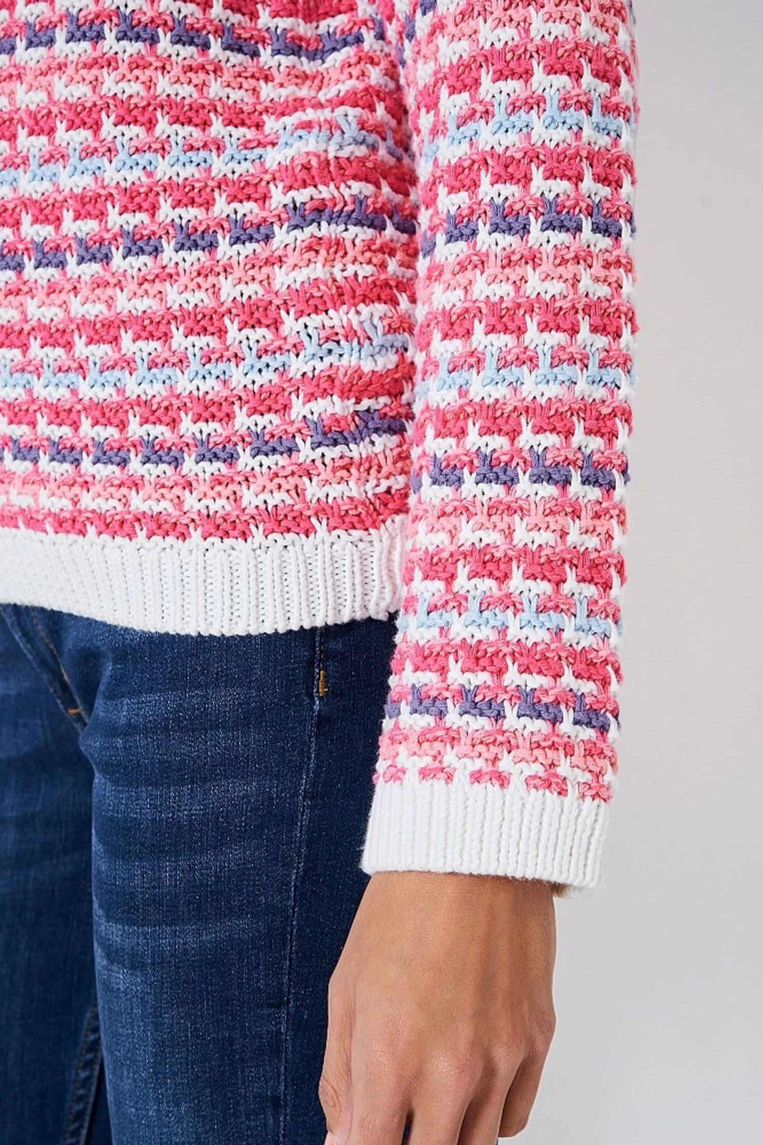 Our South Sands jumper in pinks. The chunky stitching gives this knit plenty of texture, and the classic relaxed fit has been given modern twist with this pink tonal design. Wear with jeans from weekend to weekend. Ribbed collar, cuffs and hem. Machine wash at 30 degrees.