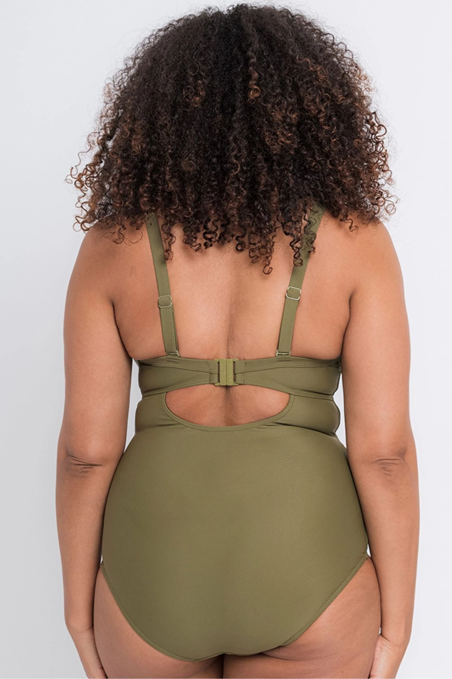 Curvy Kate Olive Green Retro Sun Padded Plunge Swimsuit