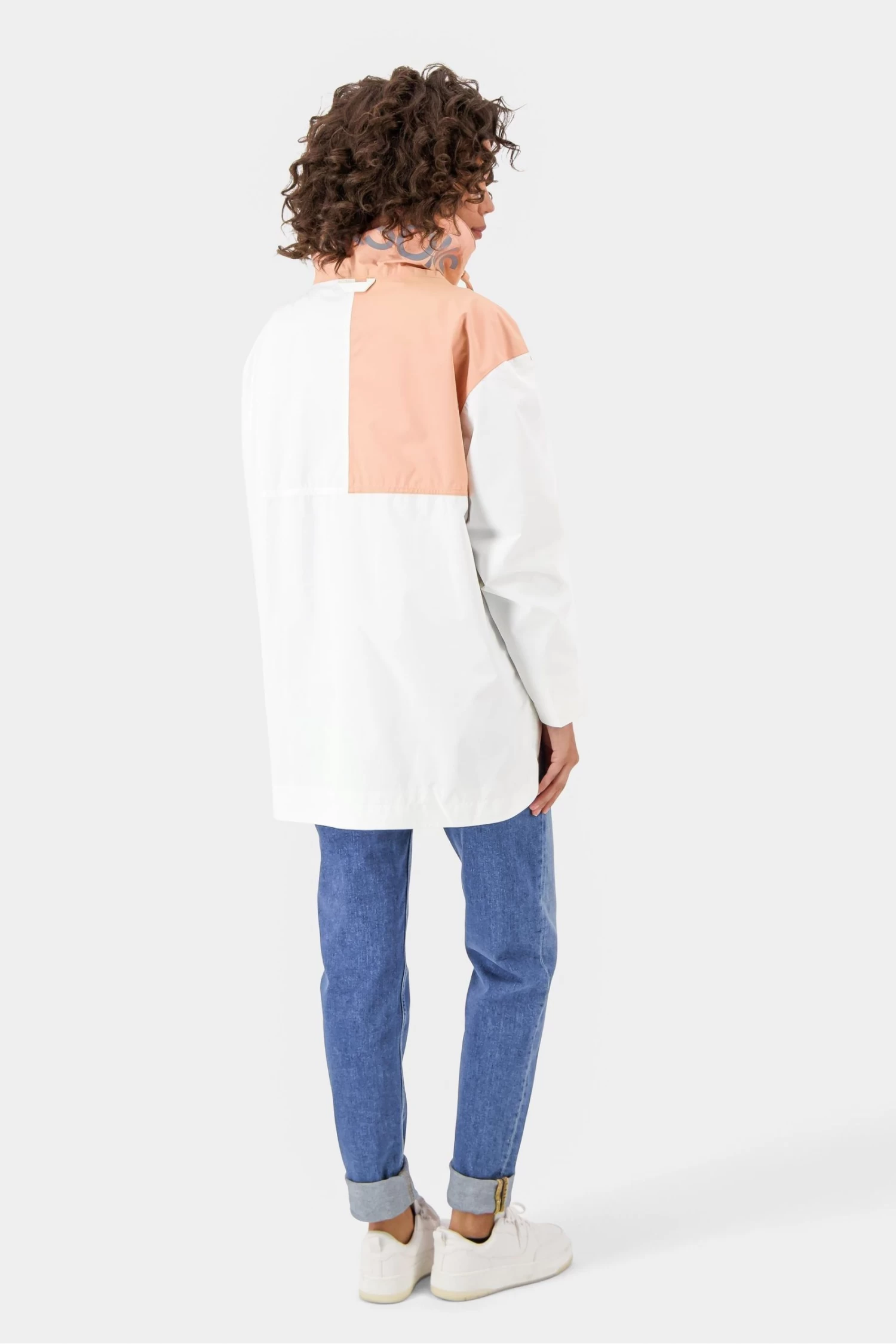 Apart from having your back through countless days of pouring rain, windy boat trips and adventurous walks by the shore, the Thyra anorak is created with an important purpose: to be recycled. It is made in a mono-material design, meaning that the fabric is easier to recycle since it doesn’t have to be separated. The jacket’s materials are all made in polyester, from the mesh lining to the laminated surface. We wanted to push our limits with Thyra, and challenge the standard ways of designing a sporty, functional jacket. So, we made an anorak without any trims. This makes for a lighter jacket that is easy to pack for your escapades and is also one of the important features that makes it so easy to recycle. Thyra is a trim-free jacket, anorak style, with an oversized fit. It has a soft, light woven ripstop fabric with a matte surface.