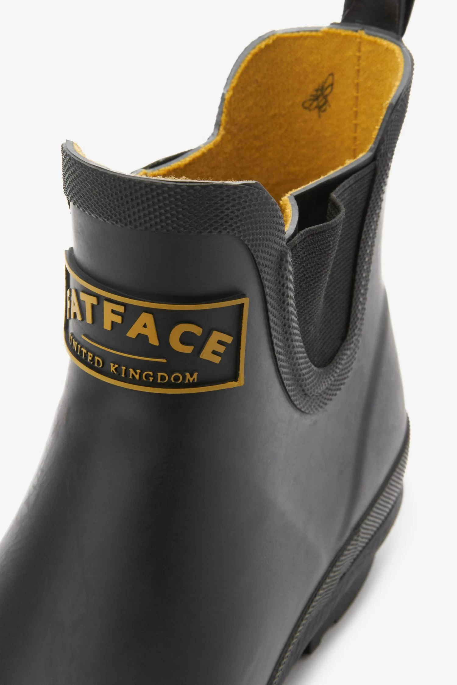 These smart Chelsea boot style wellies from FatFace keep feet comfy and dry all day long. Featuring plain side elastic gusset, printed sock lining, pull tab for easy fitting, warm borg inner soles and grippy outer sole for comfort.
