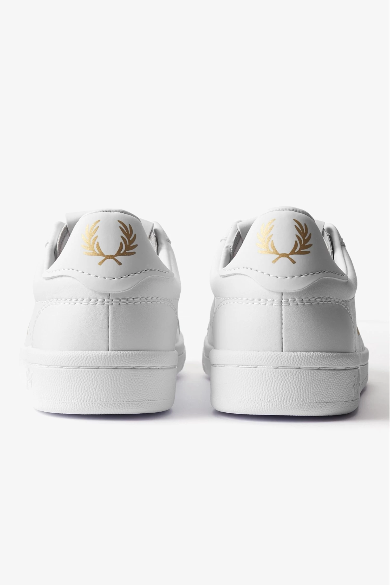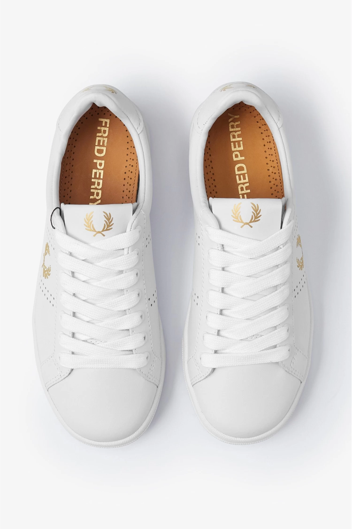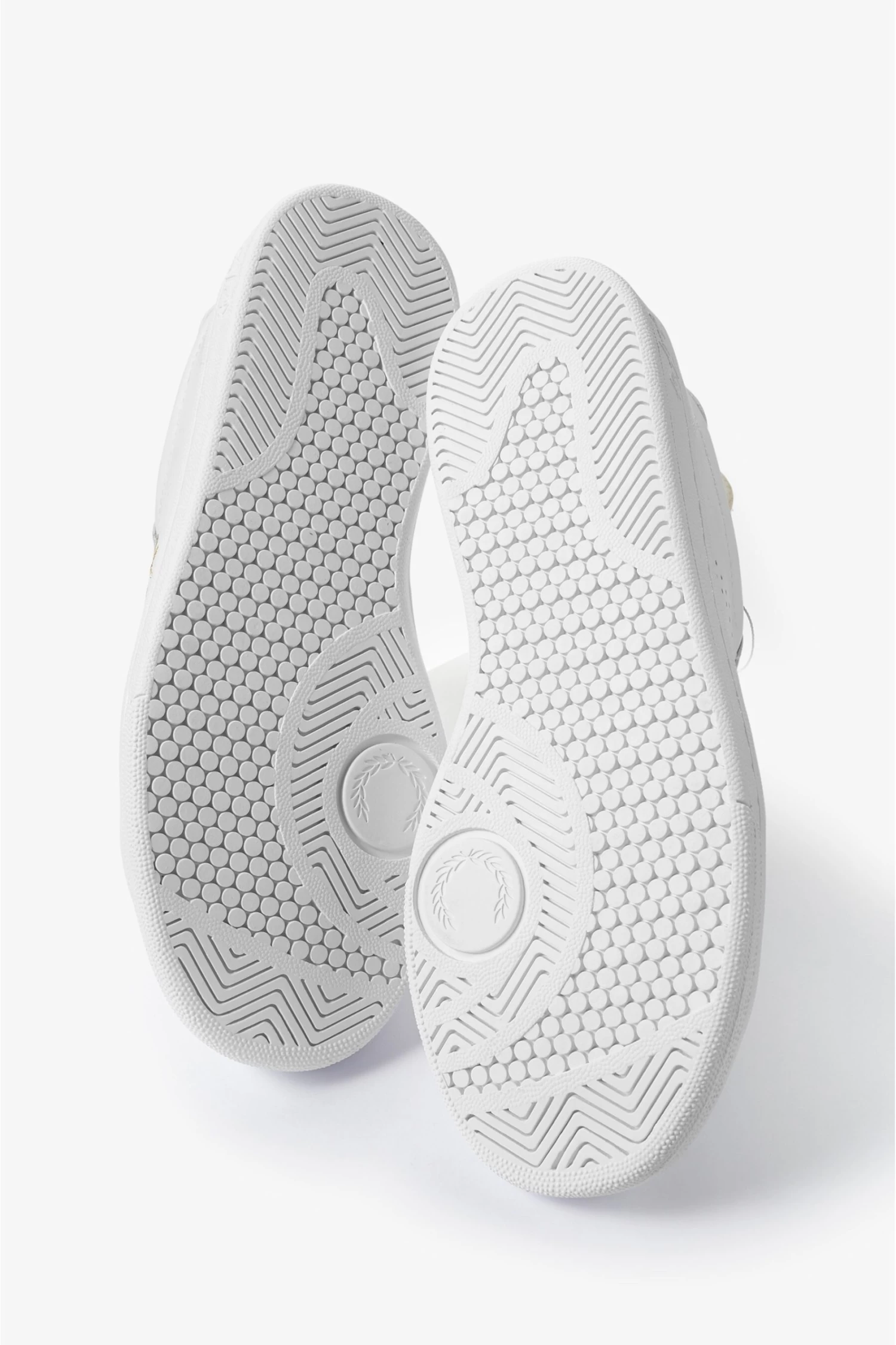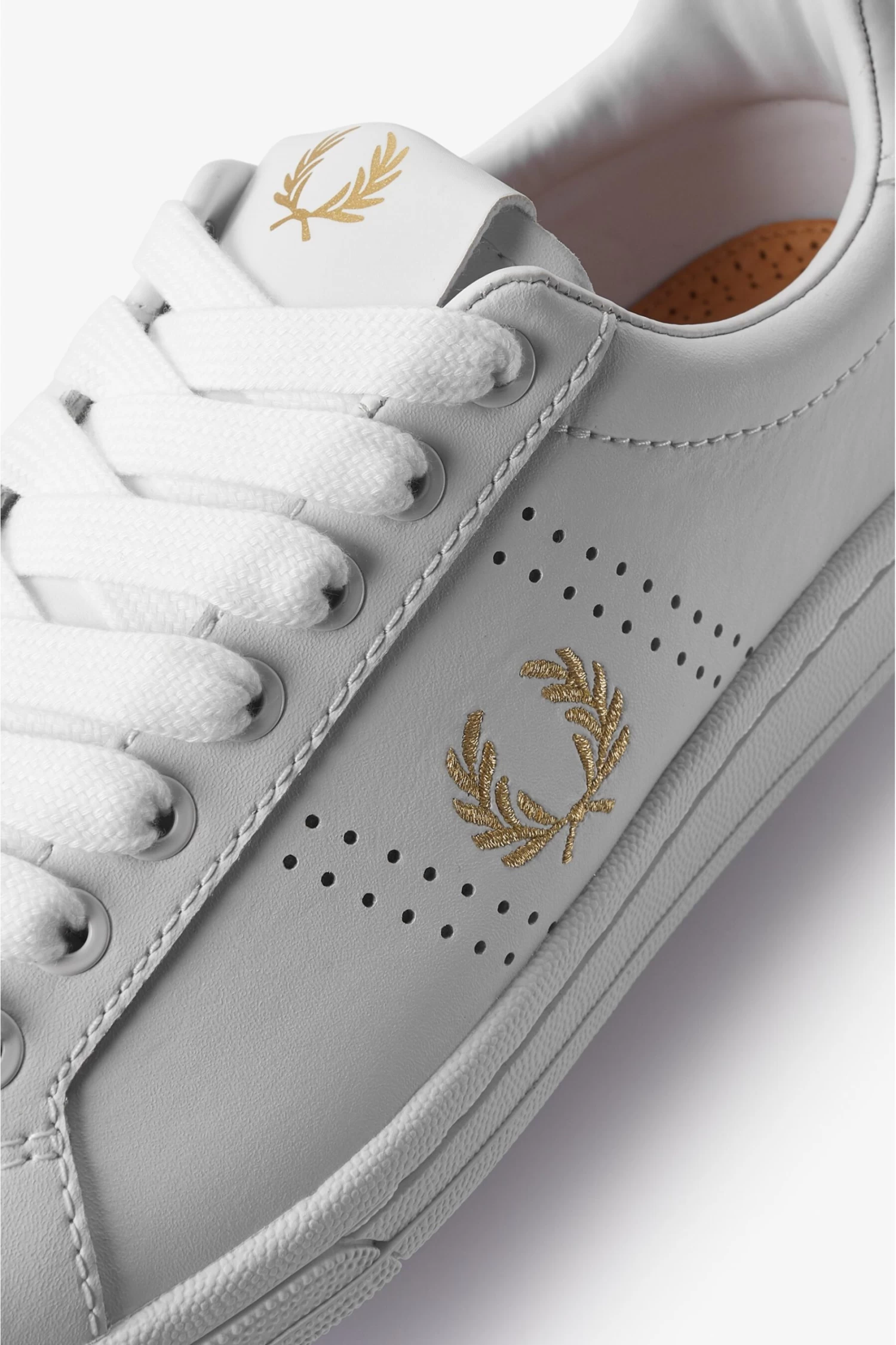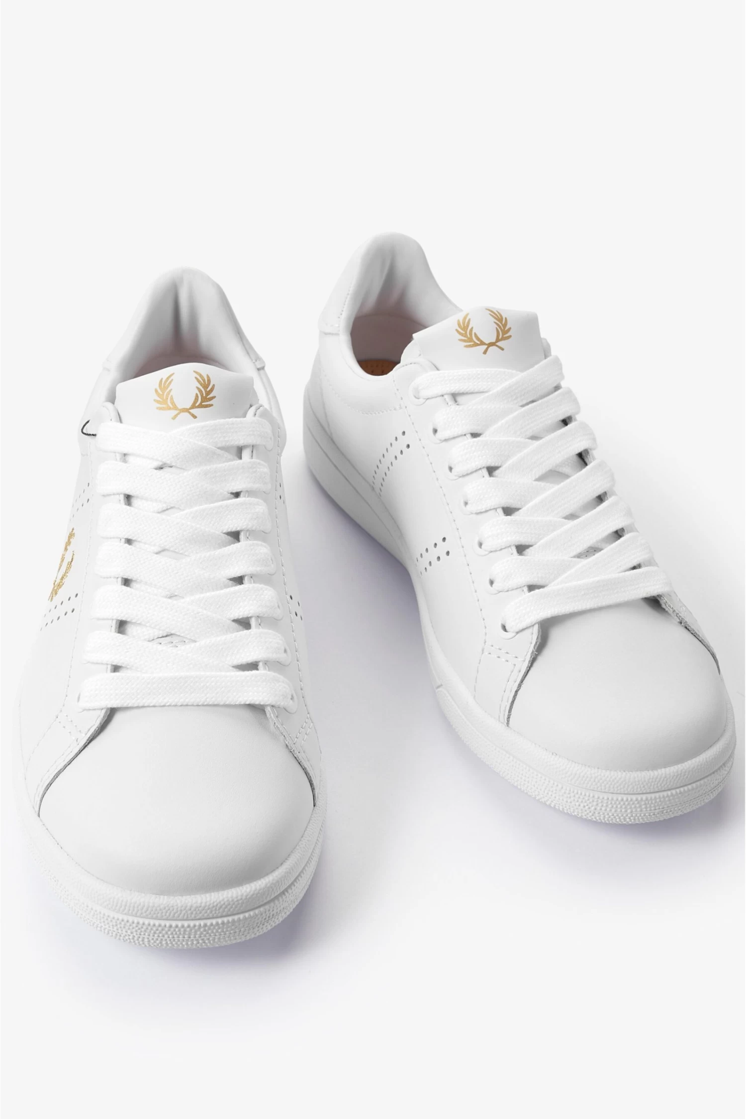 This B721 tennis shoe in leather, designed with perforated sports panelling and a contrast heel tab in Fred Perry colours. Trimmed with signature Fred Perry branding on the outsole.
