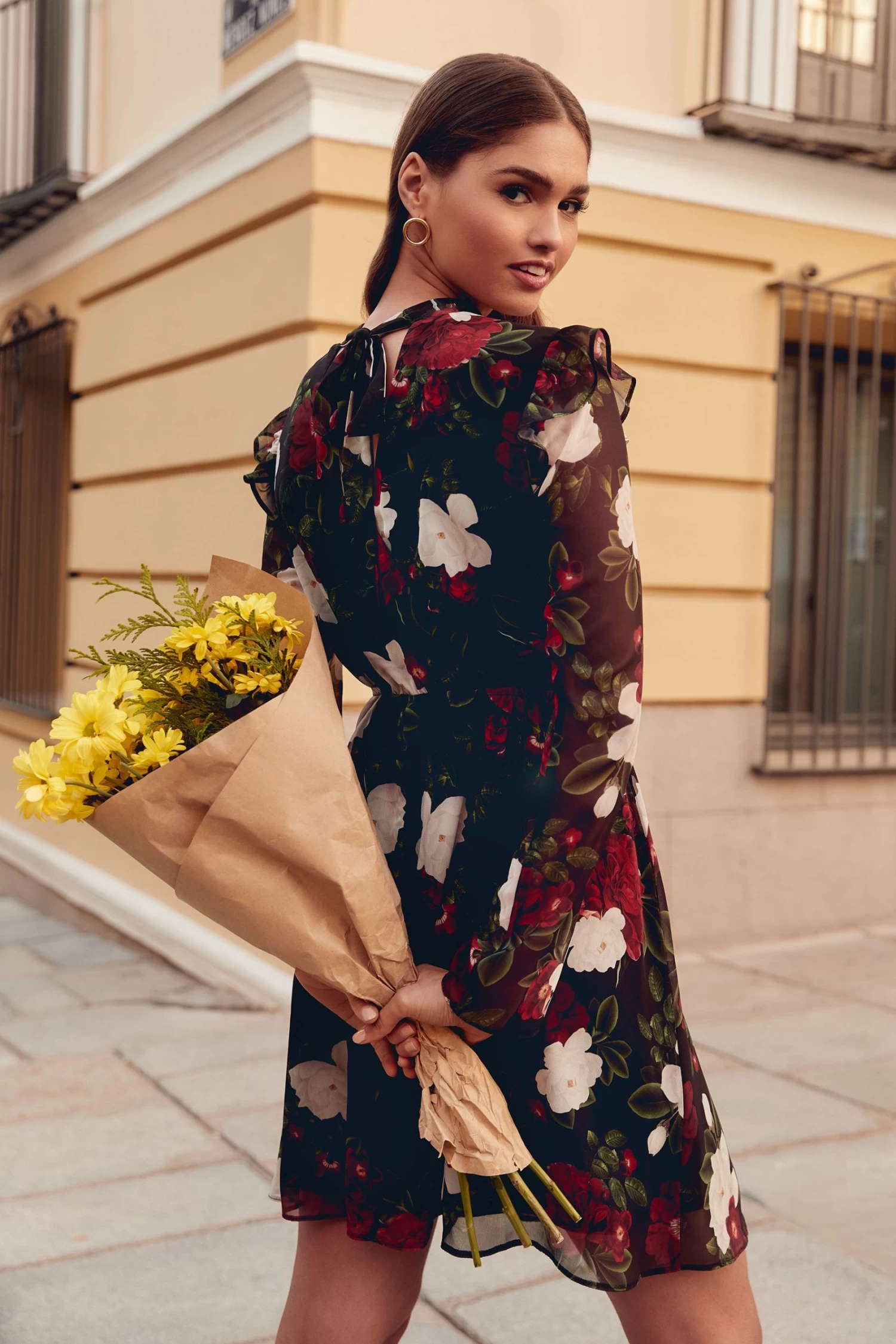 Friends Like These Chiffon Tie Back Long Sleeve Mini Dress