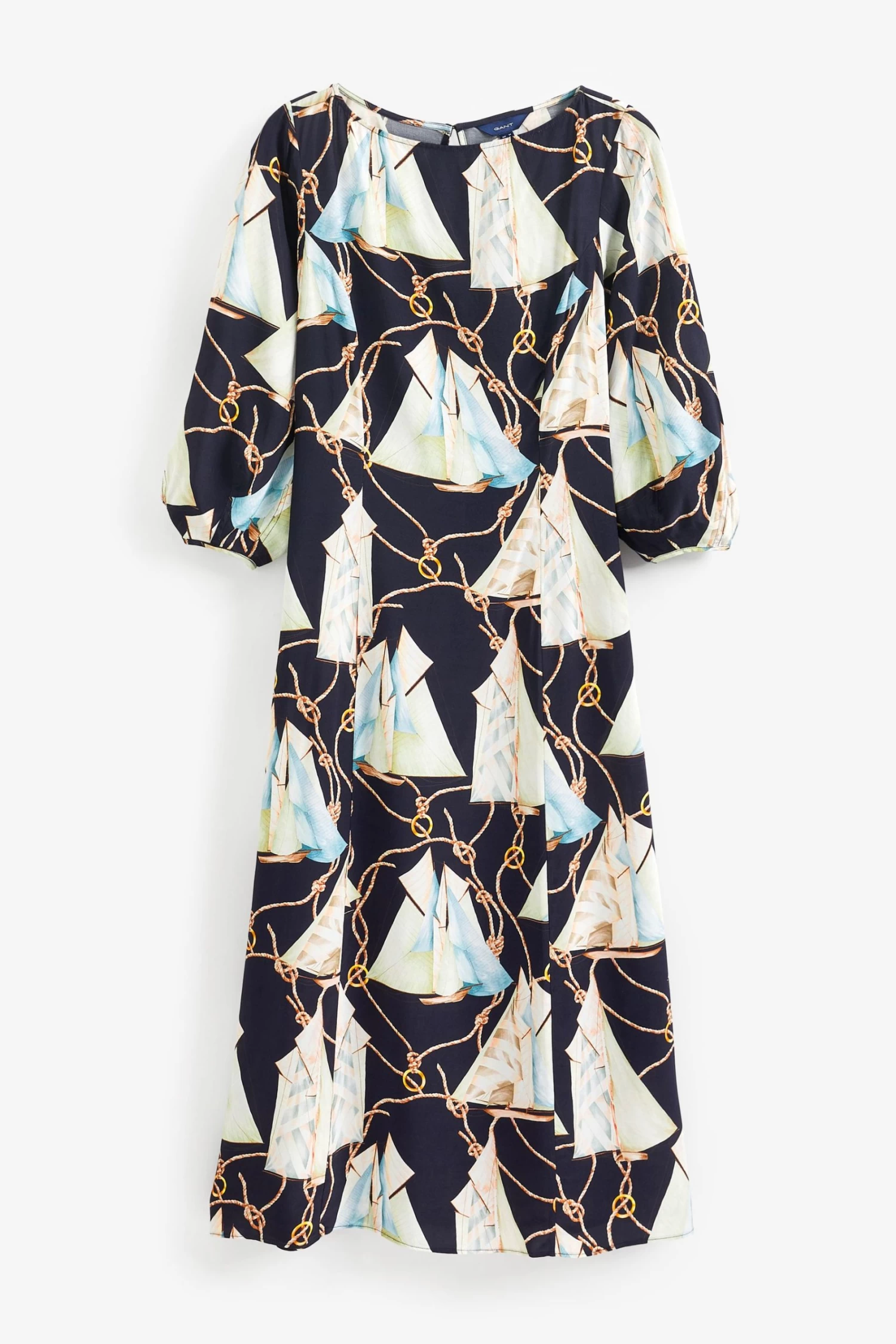 Light and airy, the GANT Sailing Print Dress Boatneck in 100% viscose, features an all-over seasonal sailing graphic, inspired by artwork in the GANT archives from the 80’s and 90’s. It has a boatneck and loose sleeves.