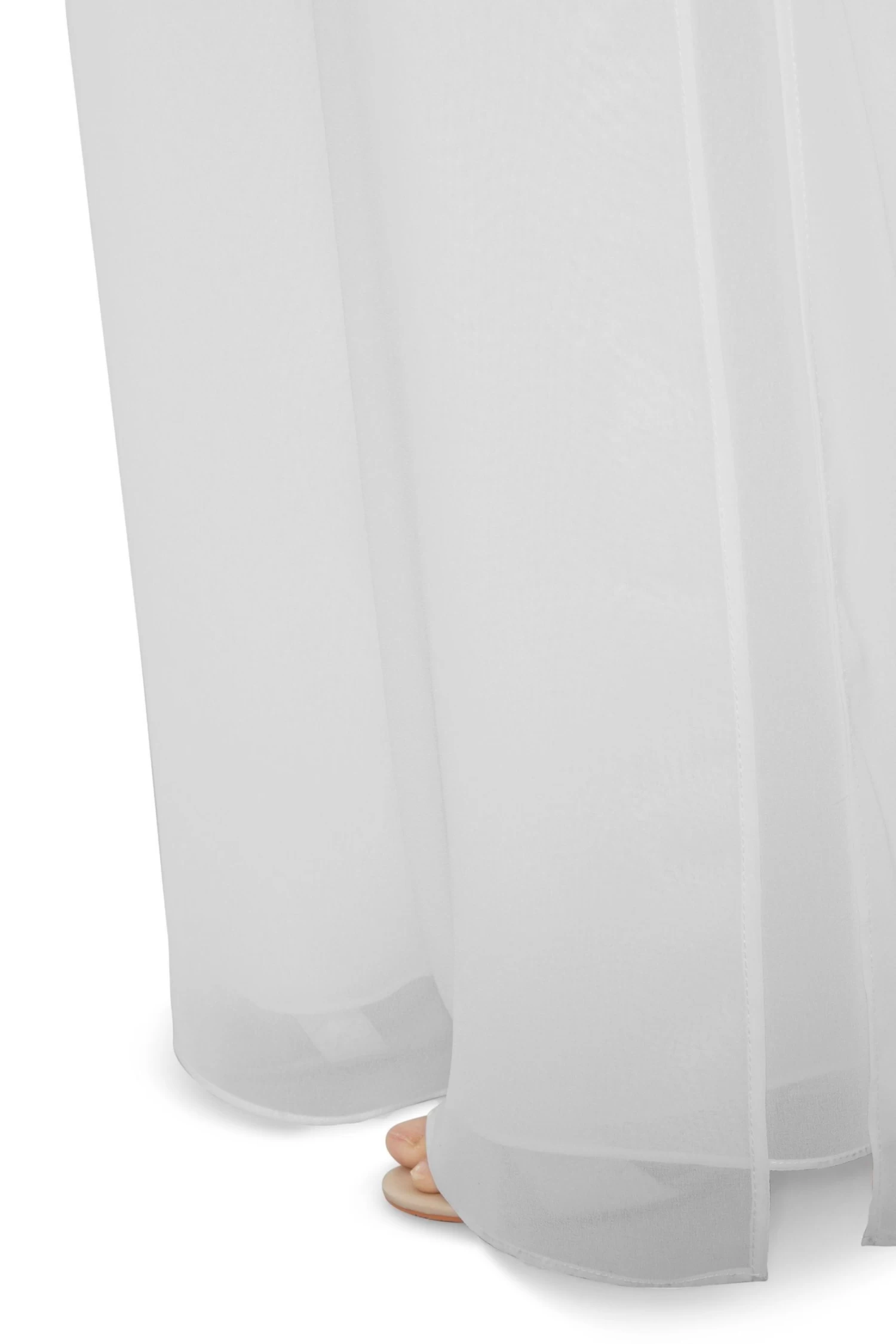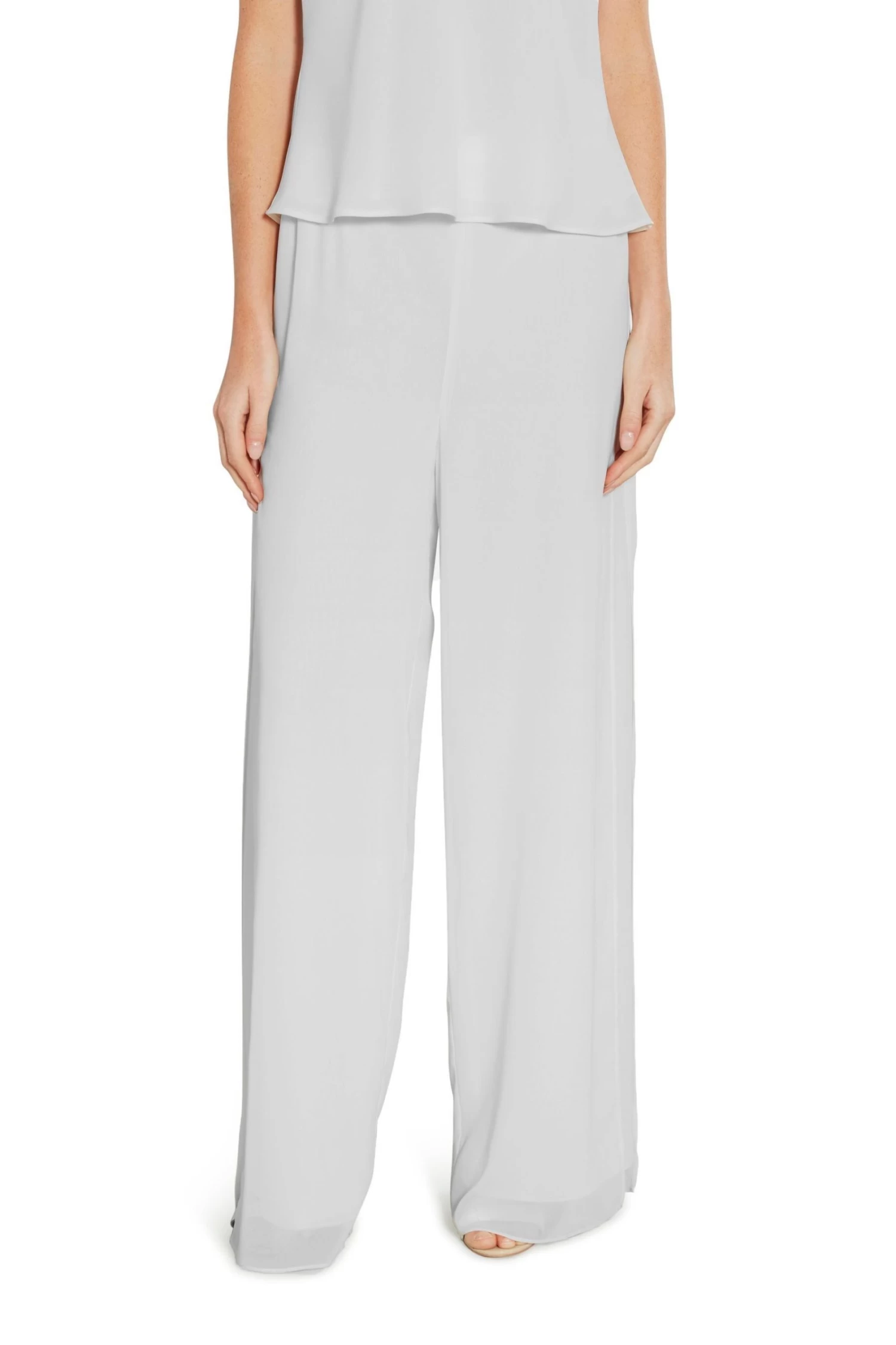 These woven trousers by Gina Bacconi are both elegant and chic. Float through the room at any event in these non stretch wide leg triple layer trousers with side slit feature. The waistband is a mix of flat and elicitation for easy wear. They can be worn easily during the day or dressed up with a glitzy top for an evening out.
