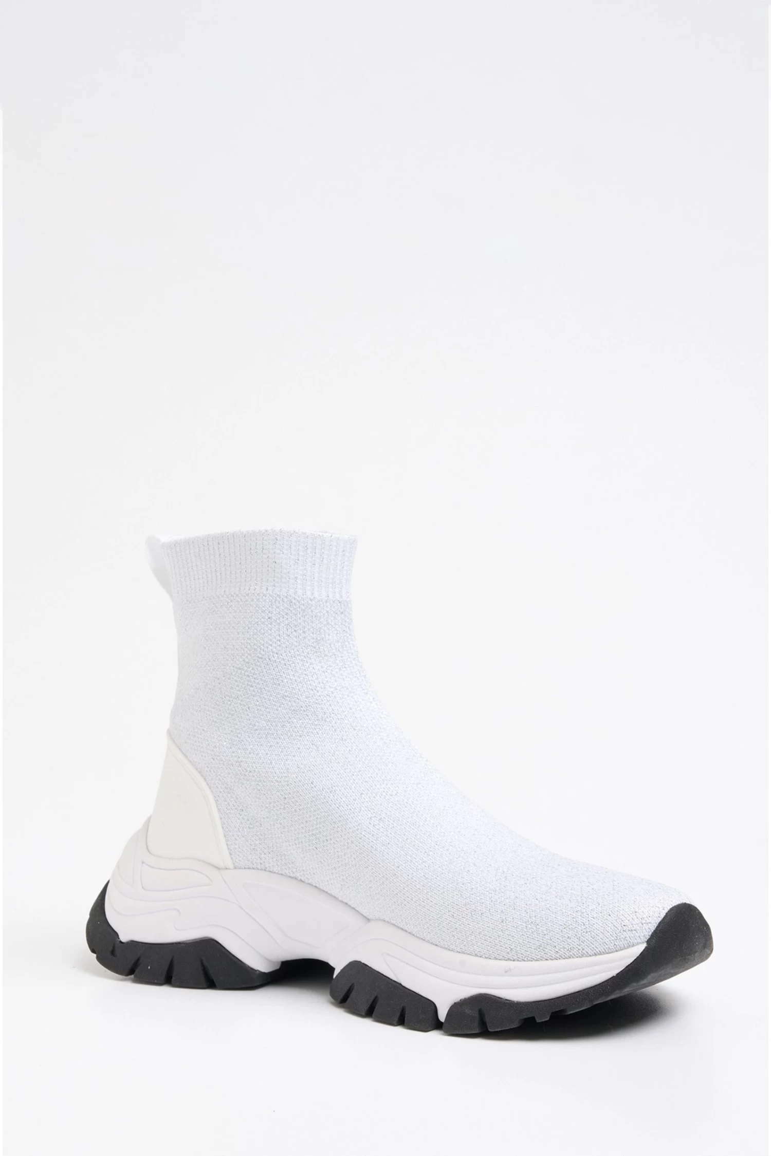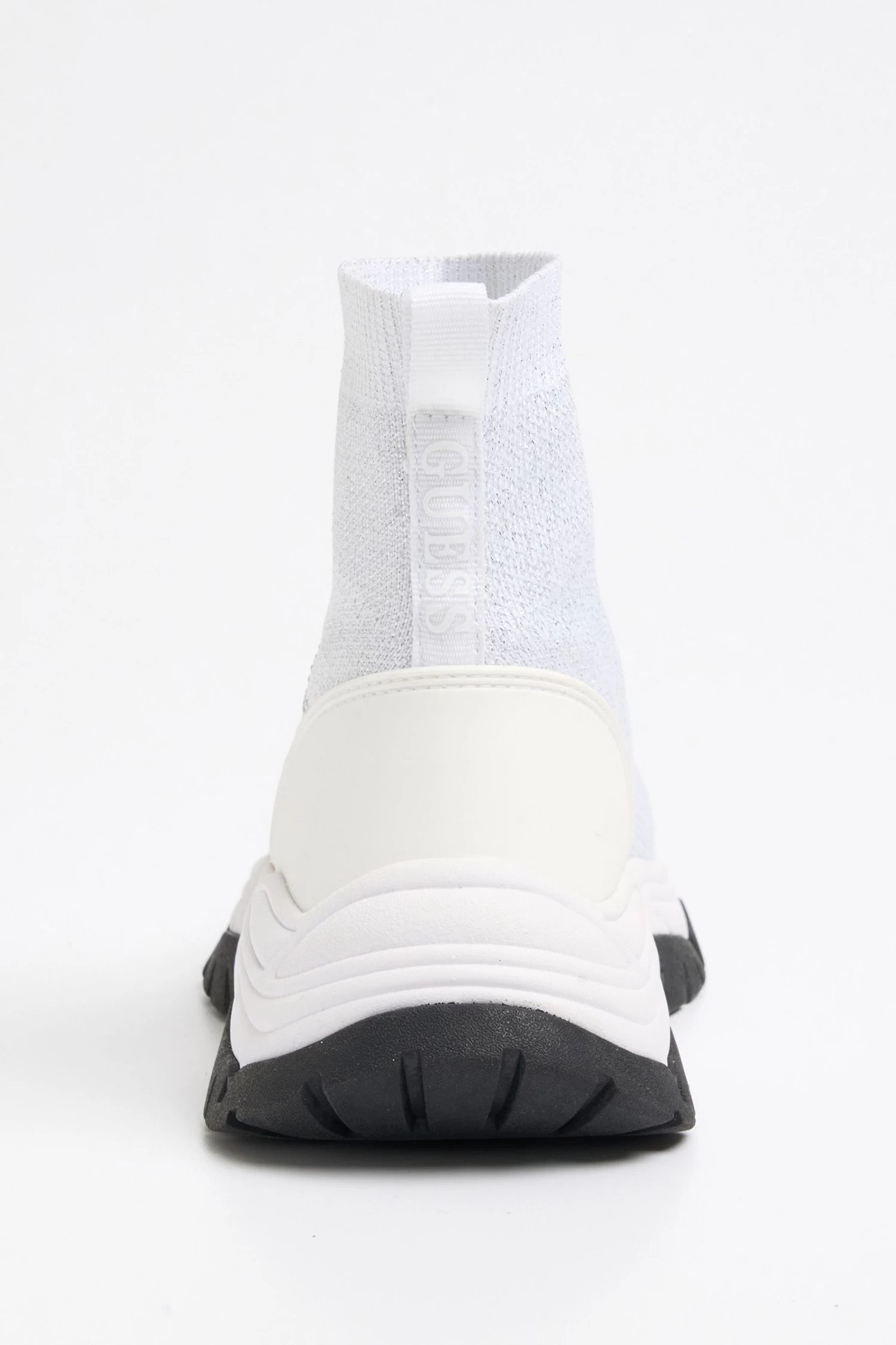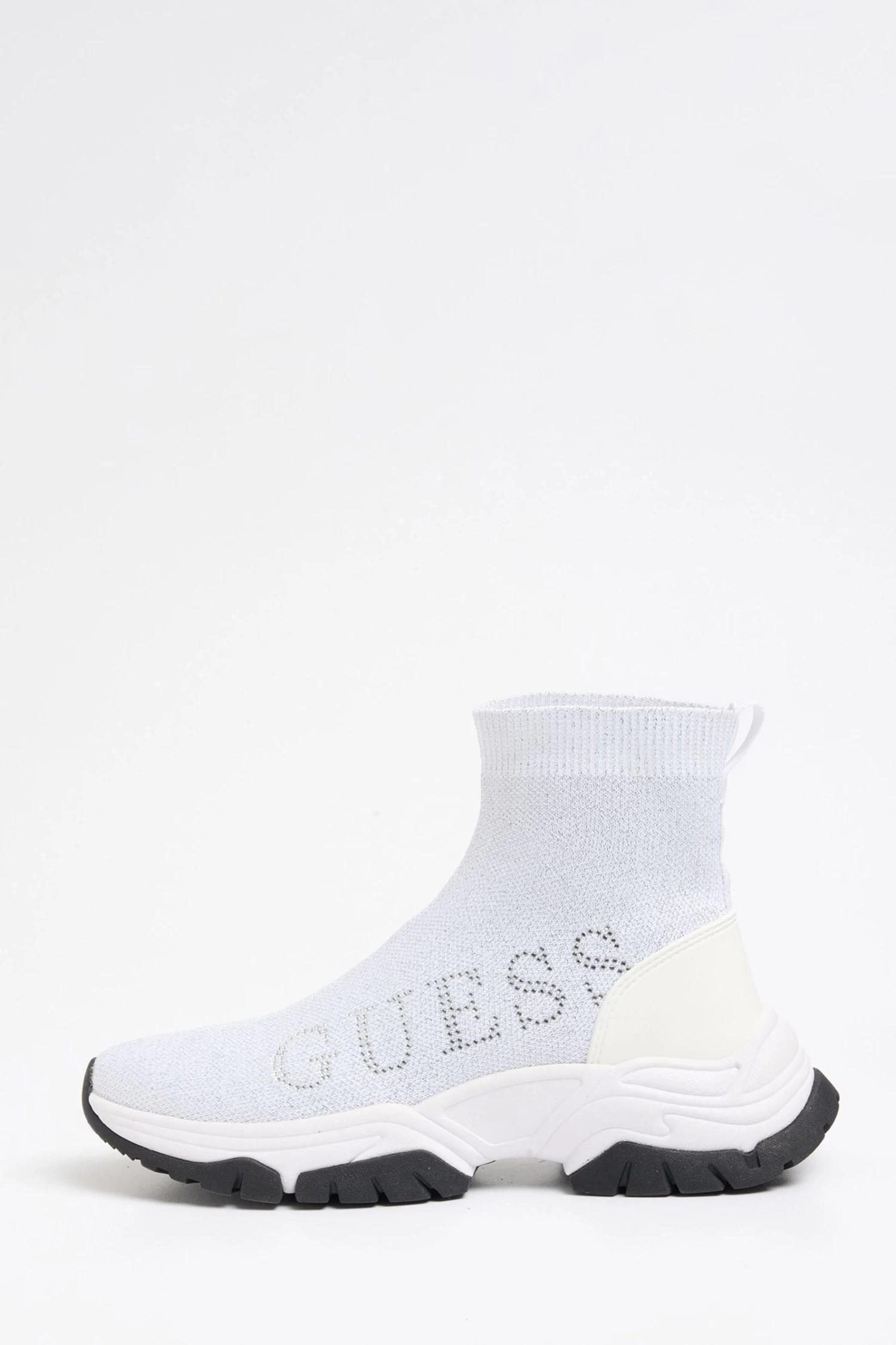 A perfect combination of style and comfort, these high top trainers feature quilted knit uppers with Guess logo with stretch insert at the ankle.