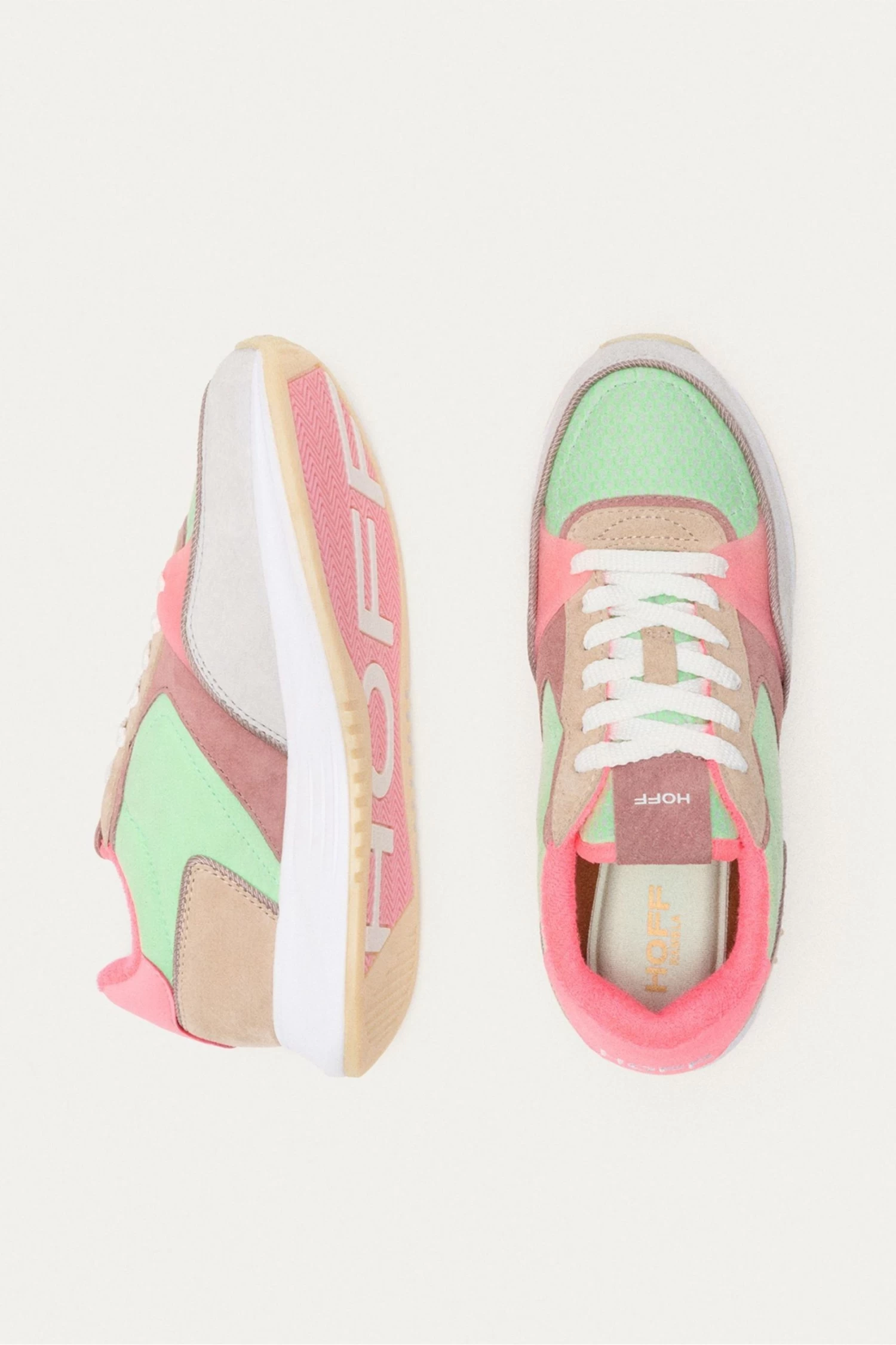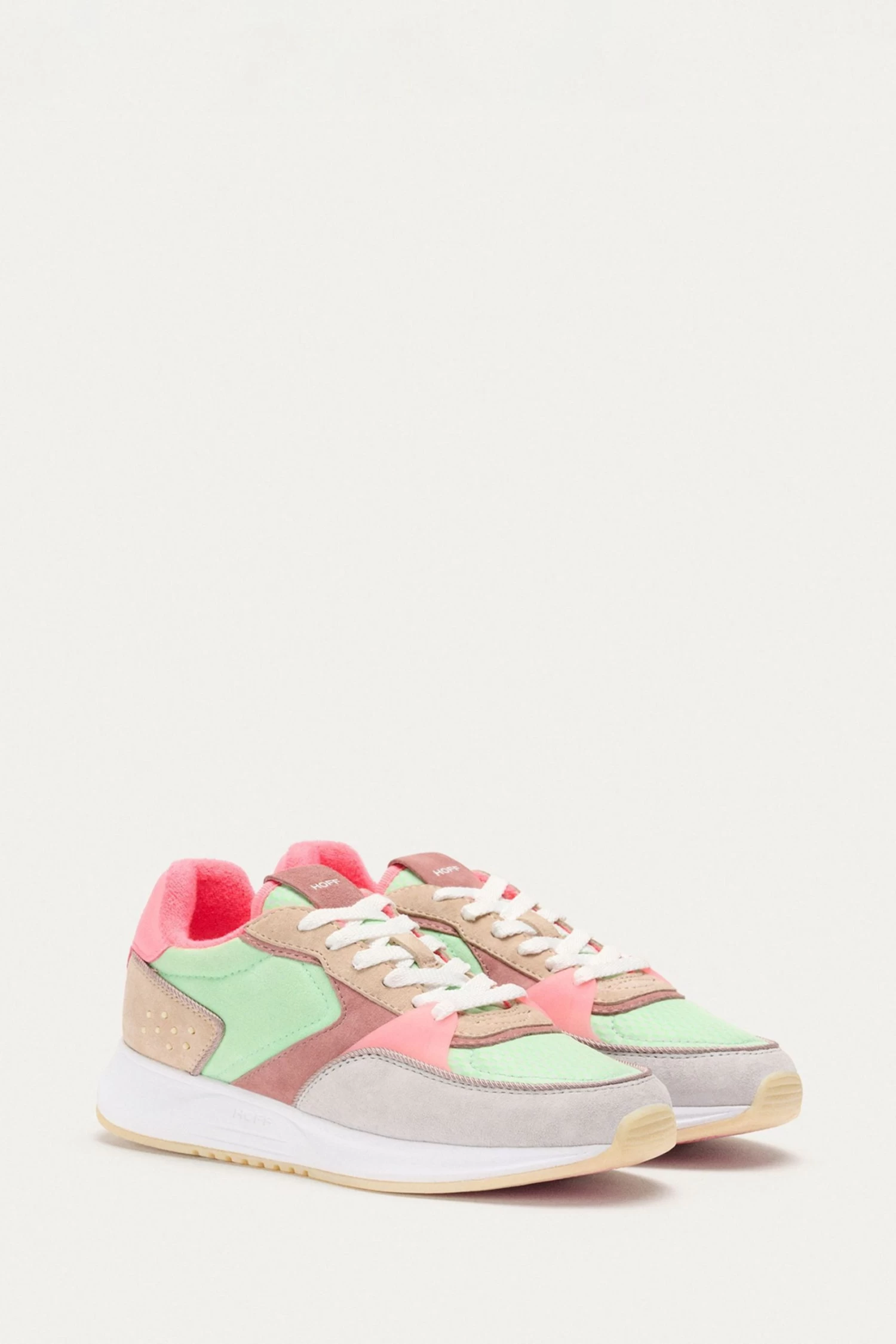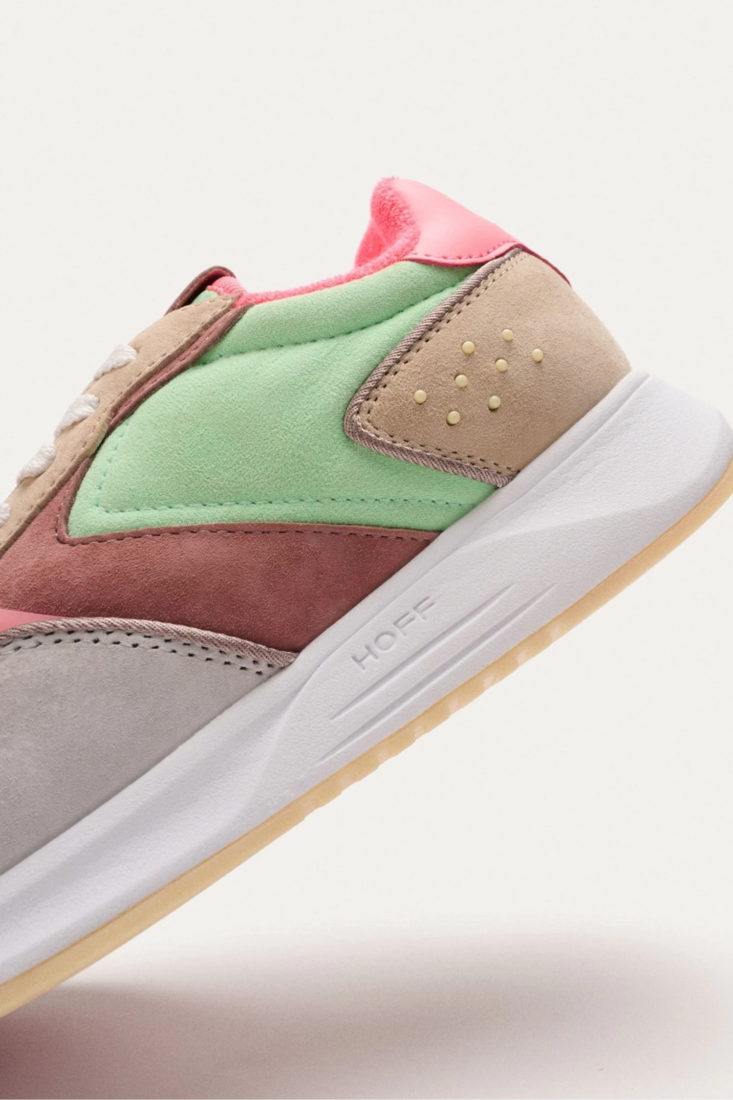 The Rambla station is an iconic place in Barcelona, Spain, known for its lively life and central location where travellers can stroll surrounded by stores, restaurants and typical bars. It is a place where art and culture come together to create a unique atmosphere. Side pieces in suede leather and textile. Logo over puller. EVA midsole 3cm high. Removable memory foam insole. Rubber sole with logo.