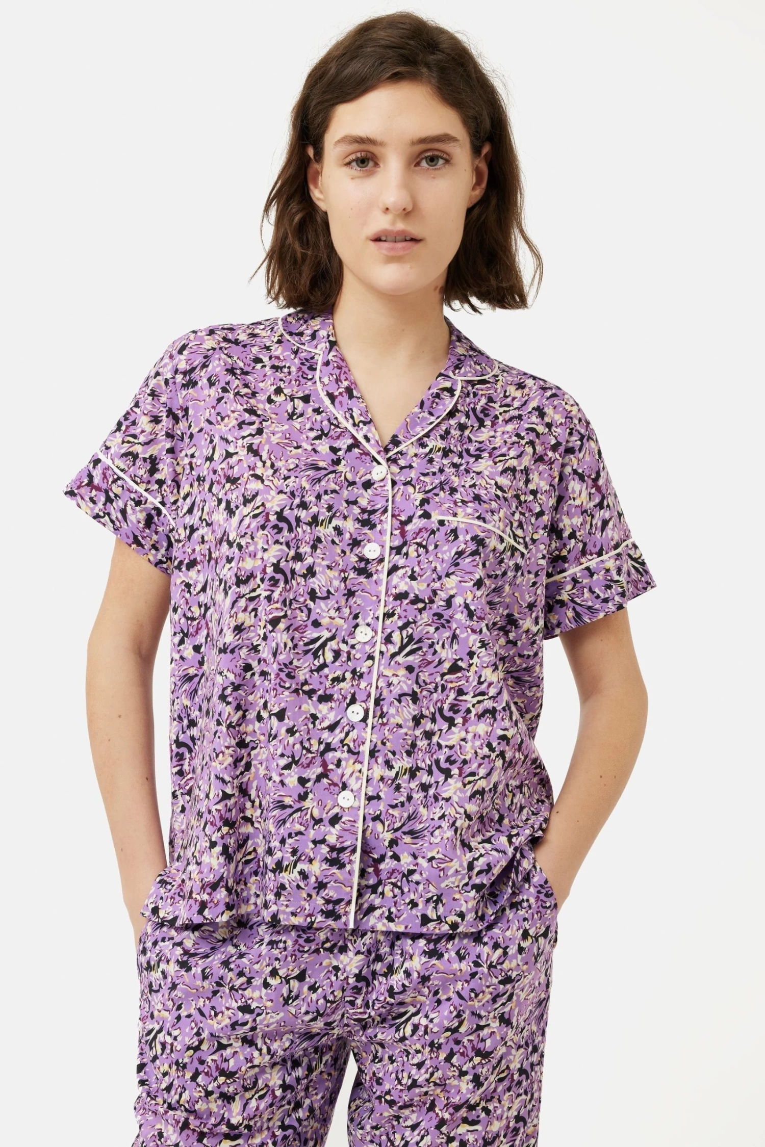 Brushwork printed pyjama set with contrast piping and embossed mother-of-pearl buttons. Jigsaw s best-selling shape, cropped in length and cut from lightweight cotton modal fabric that is soft on the skin. A comfortable, relaxed fit.