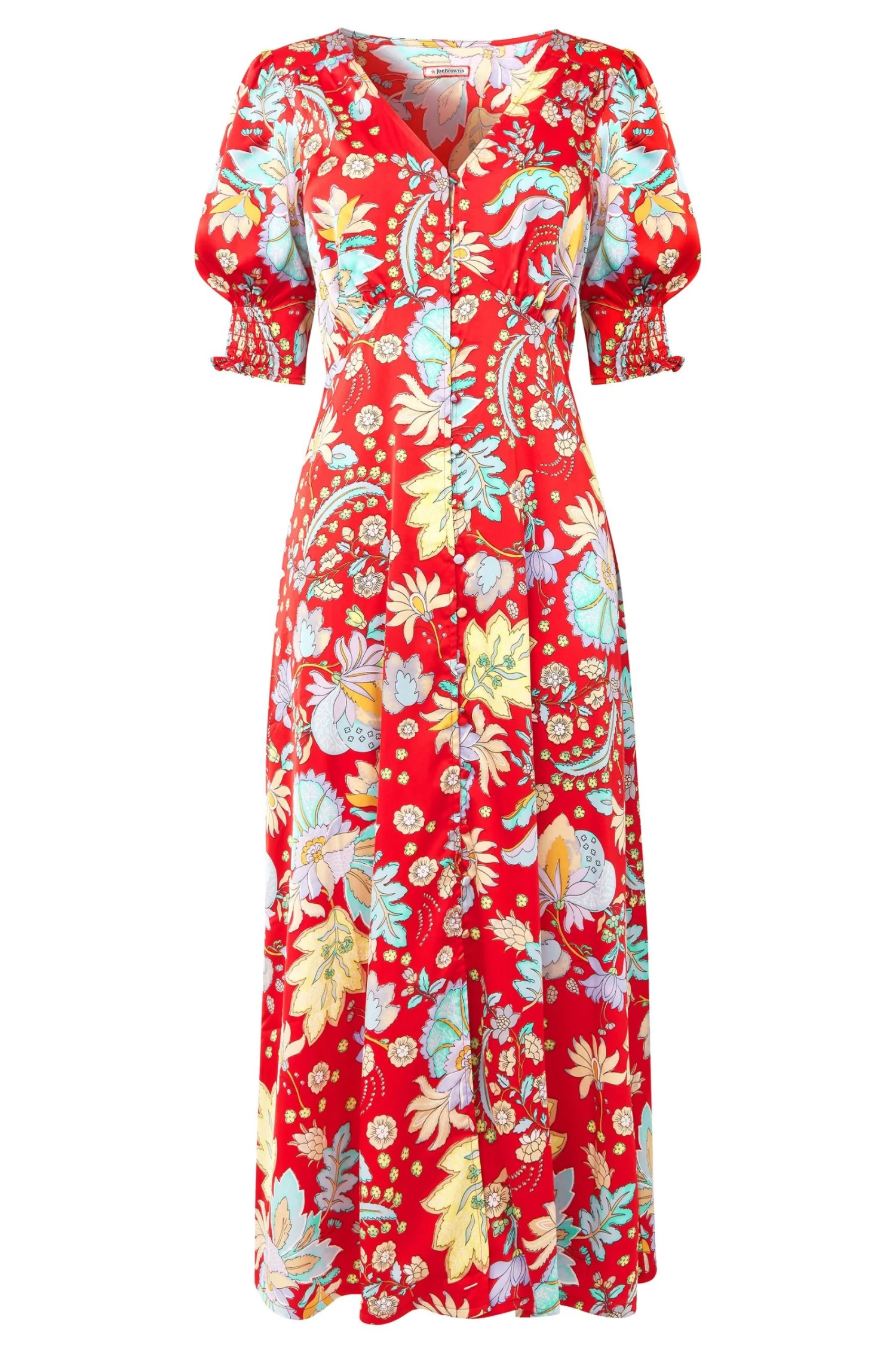 Our Poppy Floral Dress is the standout piece you need for this events season. Every stitch was designed to make an impact, from the silky fabric to the stunning print and shirring at the sleeves. A V-neck midi dress made to impress, it’ll flatter any figure, for an eye-catching occasion look you’ll love to show off. Approx Length: 122cms.