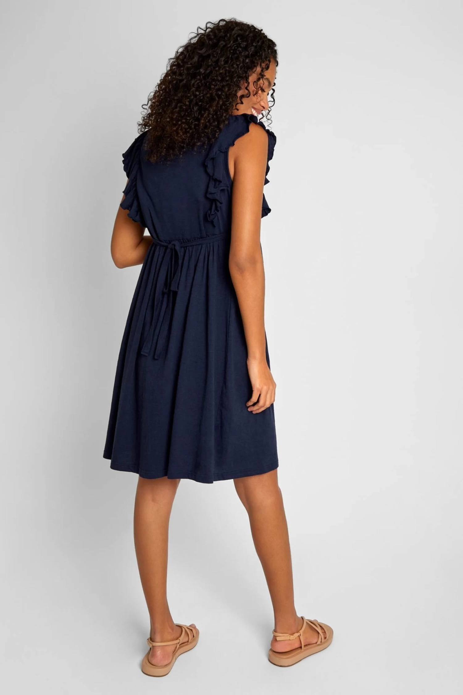This season, invest in a few summer dresses for special occasions when creating your maternity wardrobe. The Navy Jersey Broderie Anglaise Maternity Dress, featuring elegant frilled sleeves and broderie anglaise designs to the chest, is guaranteed to leave you feeling stylish and put together, with minimum effort. The soft 100% cotton fabric will help keep you cool and comfortable on hot days, and the waist tie can be used to adjust the dress to your changing shape, ensuring a great fit throughout the whole 9 months. Designed to fit throughout pregnancy Broderie Anglaise detail to chest Frilled sleeves Round neck Supersoft touch Waist tie to adjust to your changing shape Gathering to empire seam. Do not dry clean.