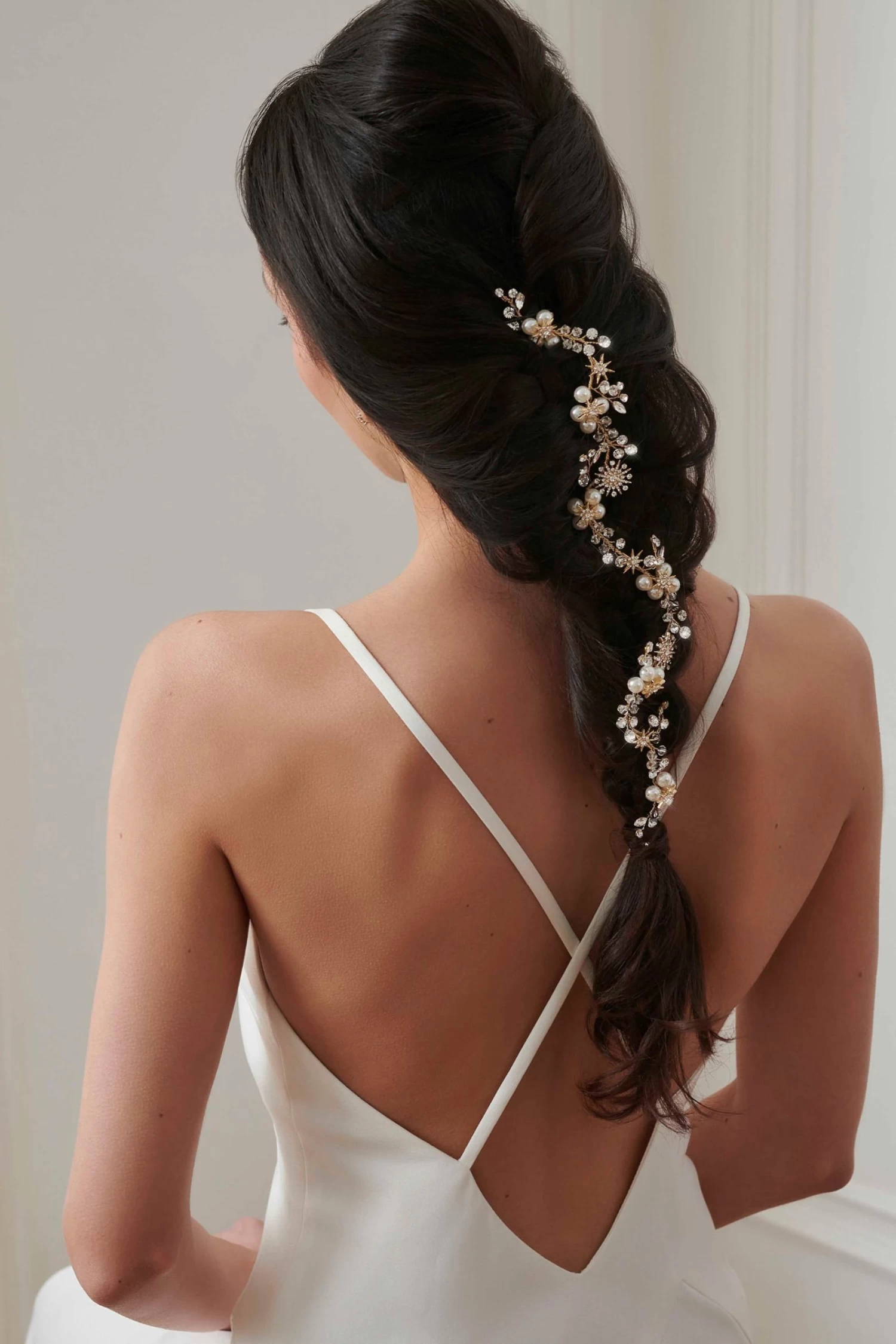 The Jon Richard Gold star and pearl vine is the ultimate accessory to achieve a beautiful look. This hair accessory is perfect for brides-to-be who want to add an extra touch of glamour to their wedding day. Style with a low elegant bun or place over loose curls to achieve princess-worthy hair.