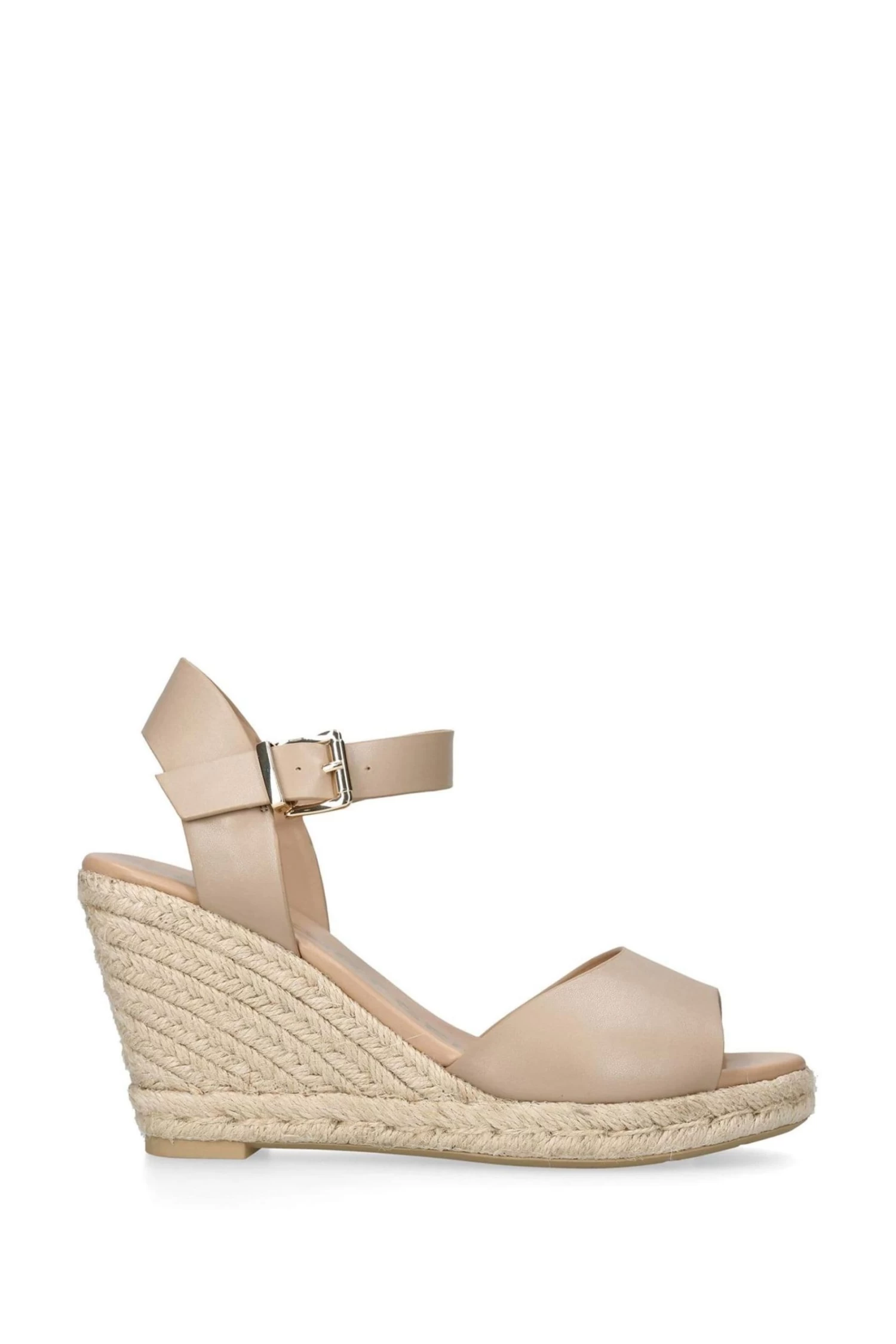Paisley 2 is a comfortable camel, low wedge sandal with an adjustable buckle ankle strap.