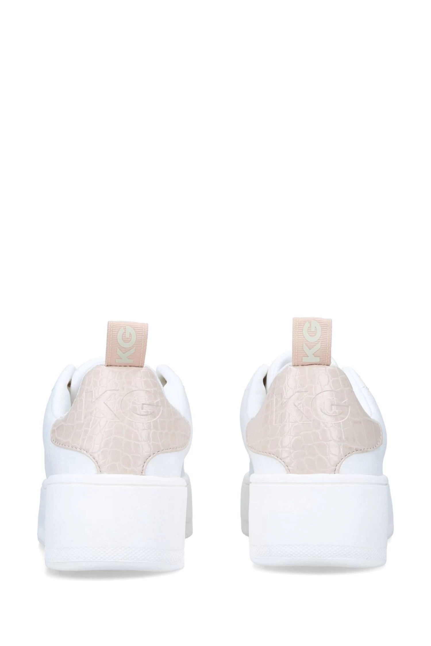 The new Lighter lace-up sneaker is designed with a vegan and recycled white upper, a sustainable take on a classic style with a contrast heel tab and a white pumped-up outsole delivering a slight lift to your look. The materials used in KG Kurt Geiger’s vegan range have been registered with The Vegan Society to confirm there are no animal products used during production. Upper Material: 41% Recycled Post – Consumer Polyvinyl +10% Pre-Consumer Recycled Polyvinyl Butyral + 22% Thermoplastic Polyurethane + 25% Virgin polyester+ 2% Others.