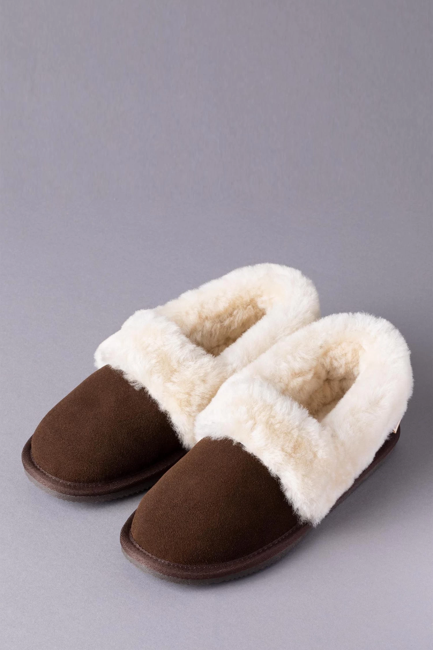 A classic slipper design constructed in 100% natural sheepskin, these Cuff Sheepskin Slippers really are a winter essential. Soft, warm and sumptuously snug, they re just the thing for keeping frozen toes at bay in the colder months, and ensuring that your feet stay toasty all day long! The classic shape of these cuff slippers are completed with a hard-wearing rubber sole, and air-pocket insole, that add to the incredible comfort. The natural fluffiness of the sheepskin will make your slippers feel slightly small at first but this will soon mould comfortably to your foot. If the length feels fine, you have the right size. If you can feel your toe is touching the front of the slipper, it is too small, you’ll need to size up. They recommend you size up if you are between sizes. Upper: 100% Sheepskin. Sole: Textured rubber sole. Cushioned air-pocket insole.