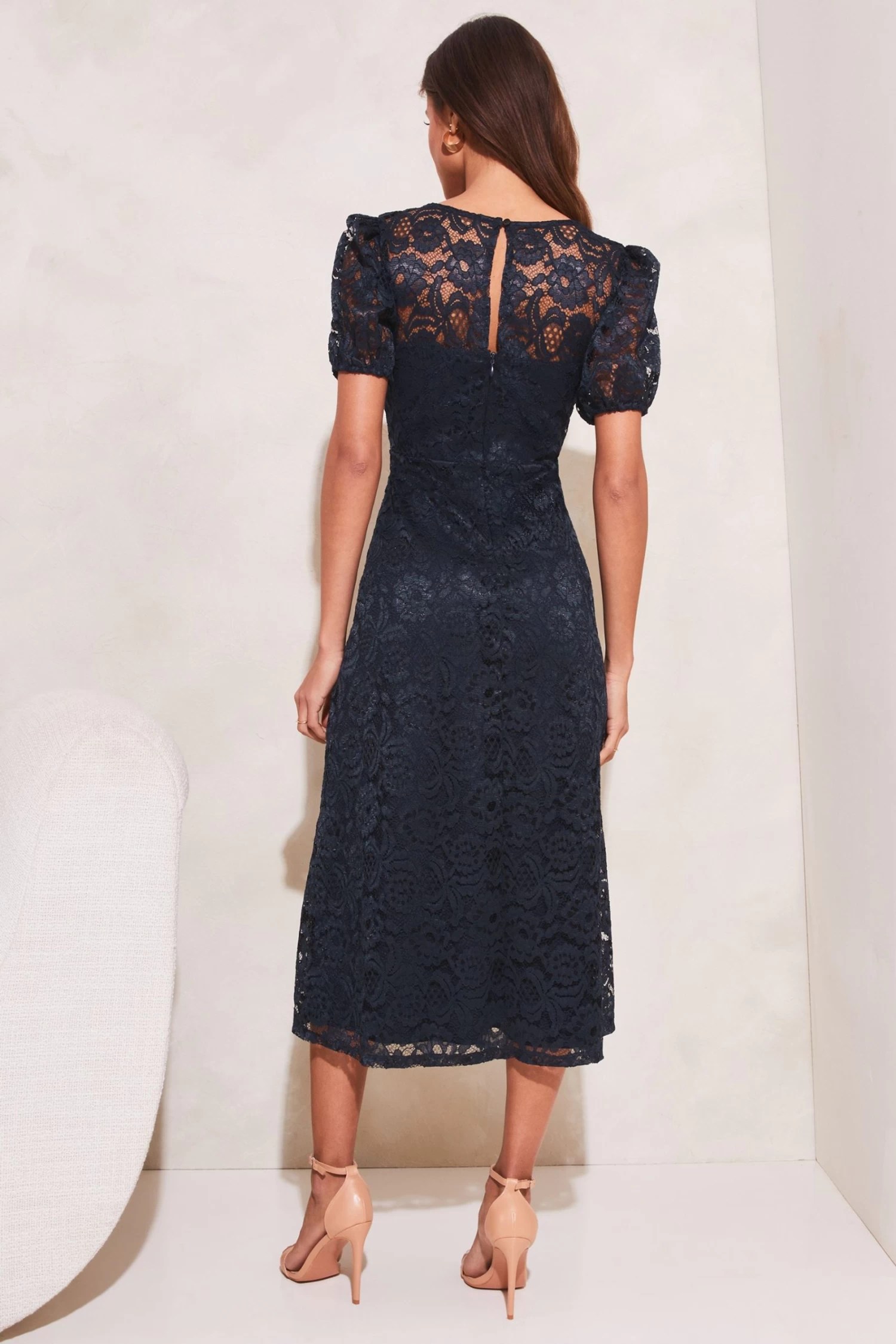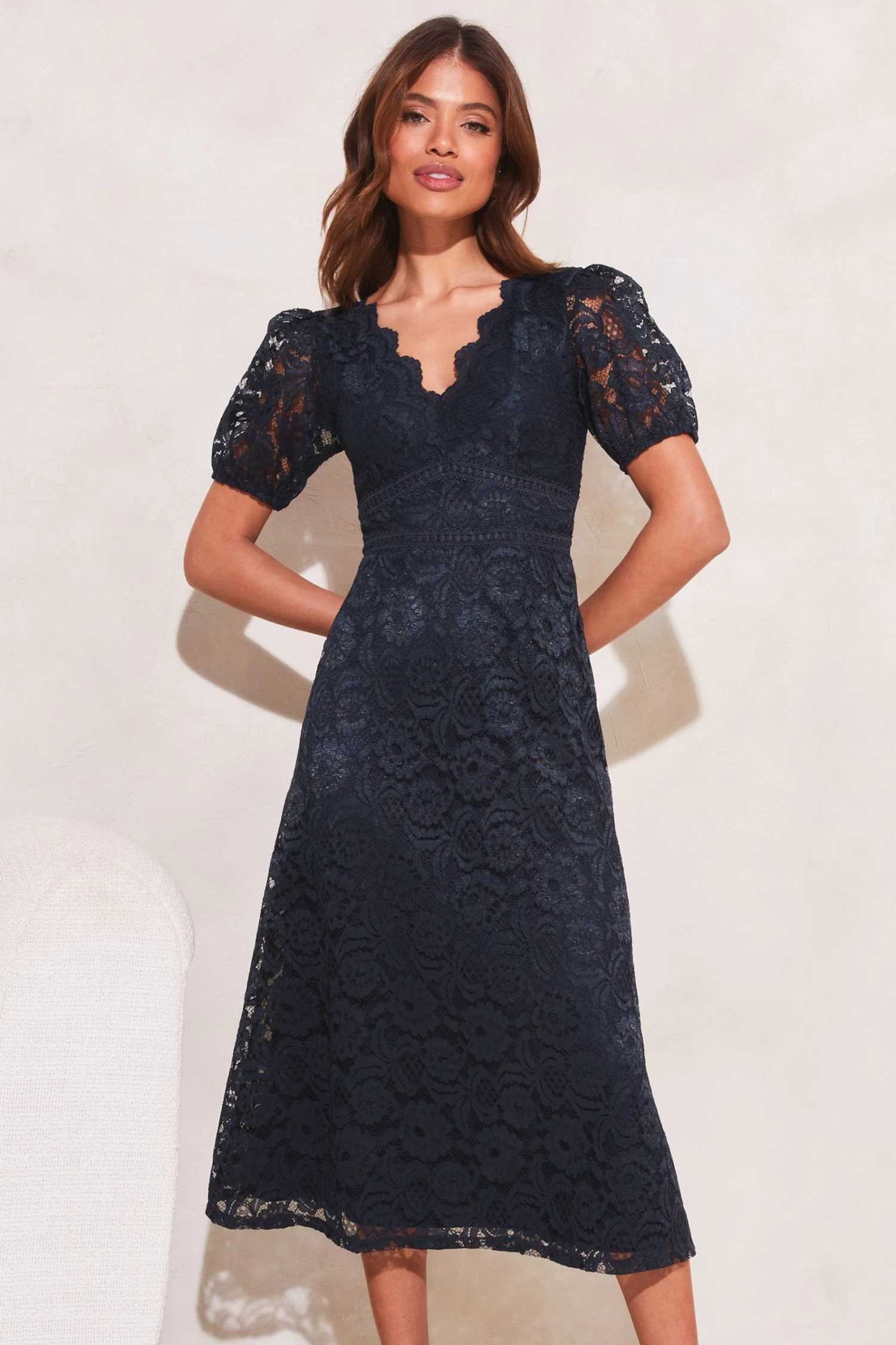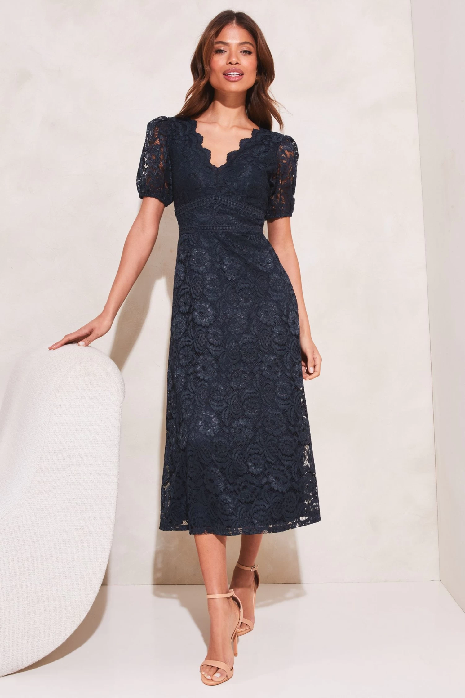 A gorgeous fit and flare dress from Lipsy . This dress is made from a high quality lace fabric.