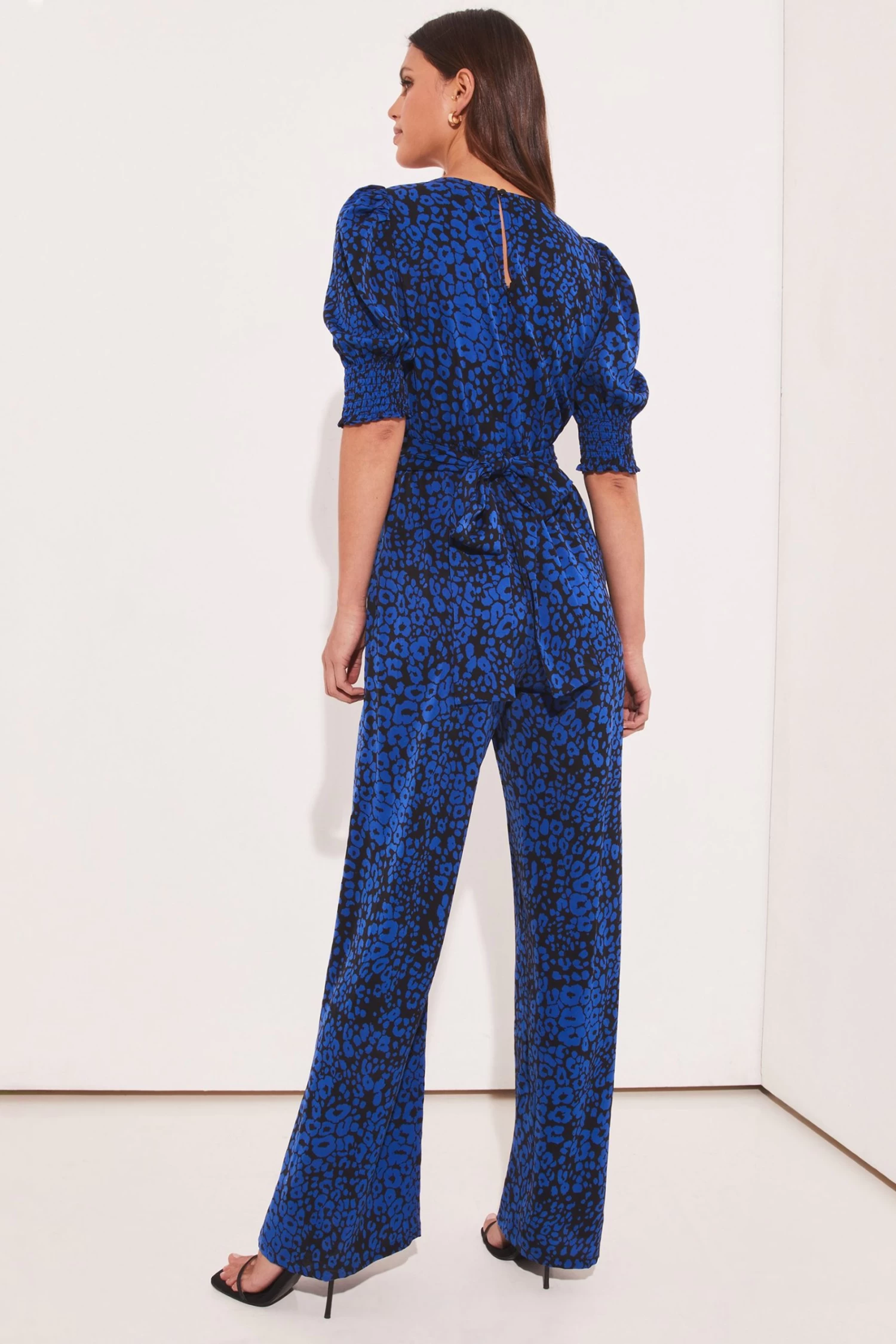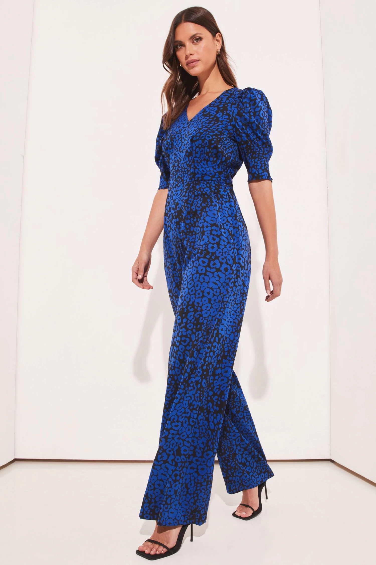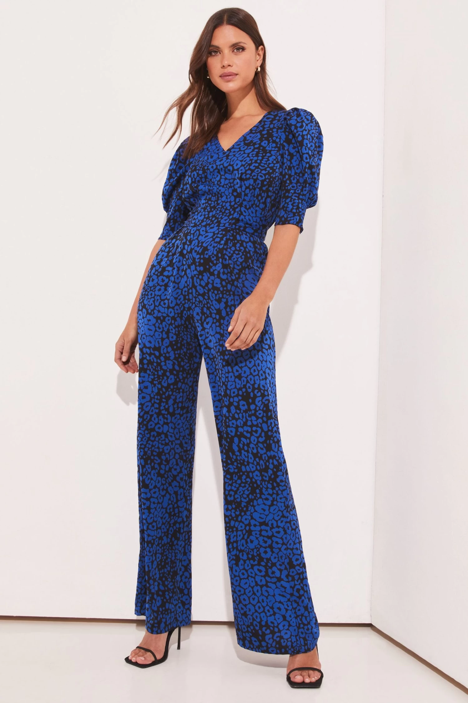 A puff sleeve wide leg jumpsuit by Lipsy featuring a V neckline and shirred cuffs.