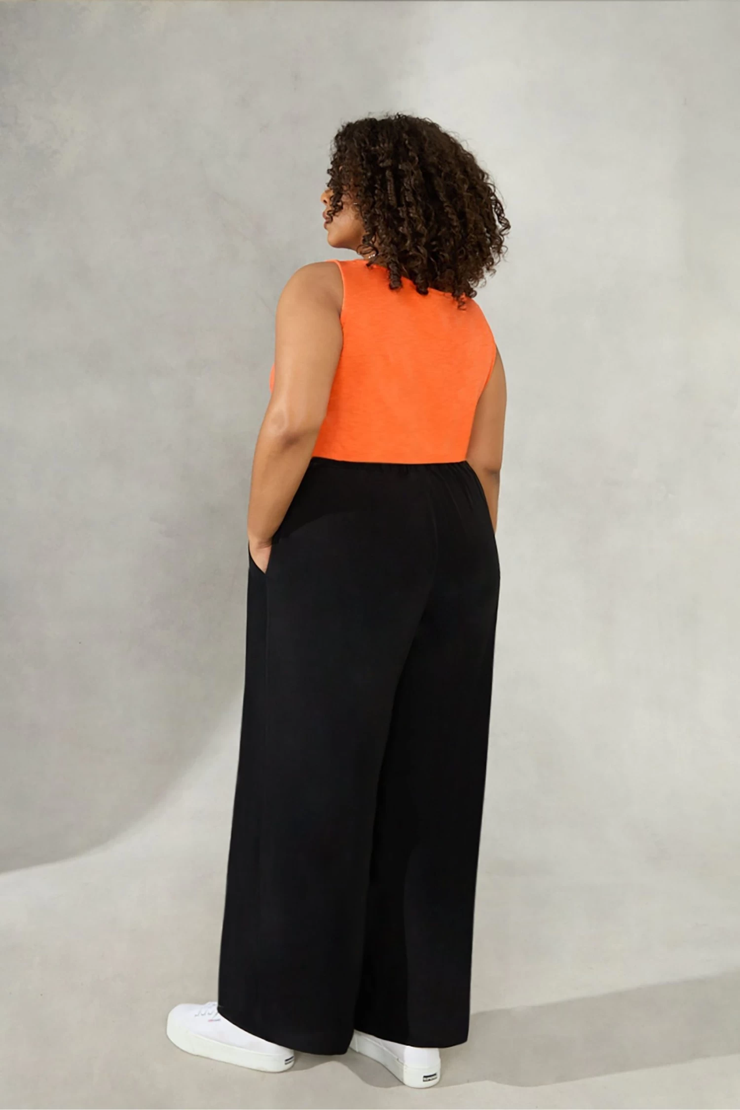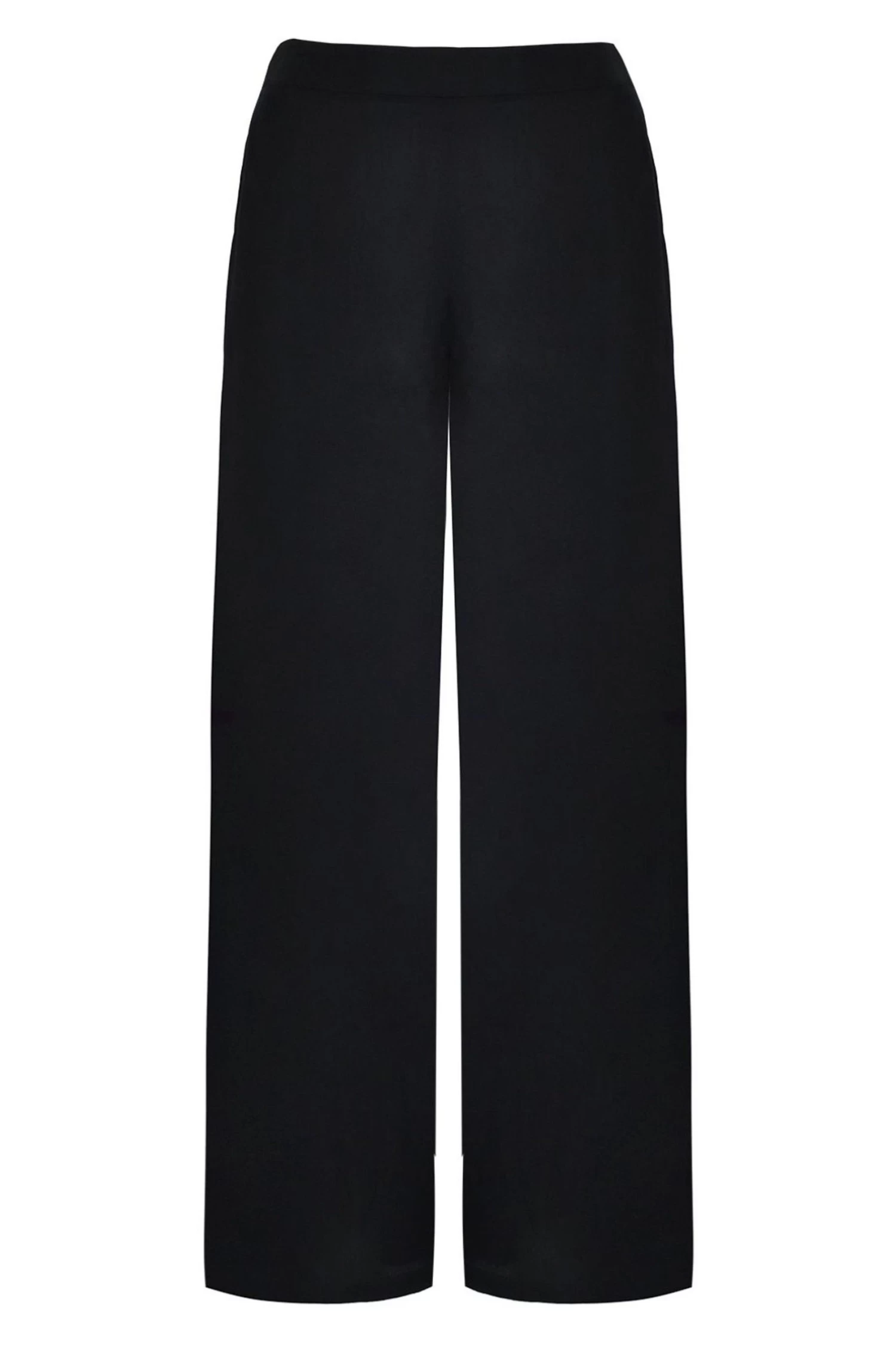 These black wide leg trousers are versatile wardrobe essential. Cut from a beautiful lightweight woven fabric, they feature an elasticated mid-rise waist for optimal comfort. An elasticated back waistband creates the perfect fit, while sewn-in side pockets bring a casual detail. Finished with a flattering, straight wide-legged design, these trousers are perfect for dressing up or down. Inside leg length:72cm.