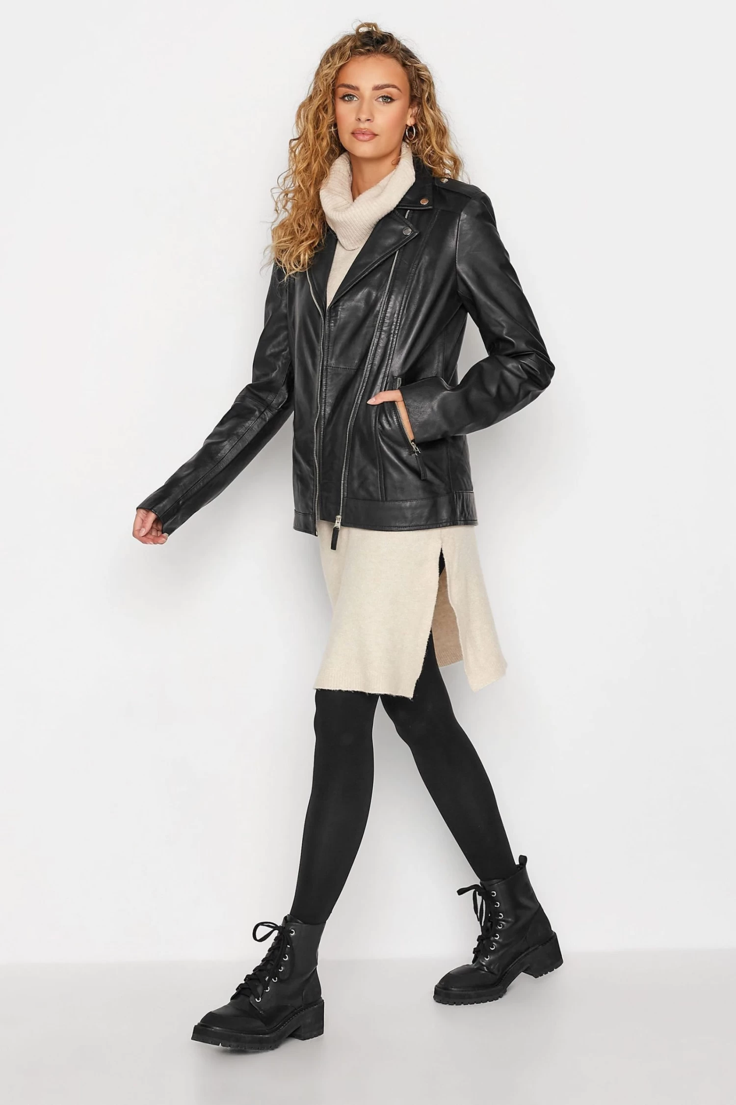 Long Tall Sally offers products for women 5’8” and over. At Long Tall Sally, our tall clothing is designed to fit and flatter tall frames throughout, available to shop in UK sizes 8-28 and up to a 38″ leg. Our models is 5’11 and wears a size 10. Elevate your wardrobe with this LTS leather jacket. Made from 100 leather it features long sleeves a zip fastening with two side pockets and an open collar. Layer over any outfit casual or occasion wear.
