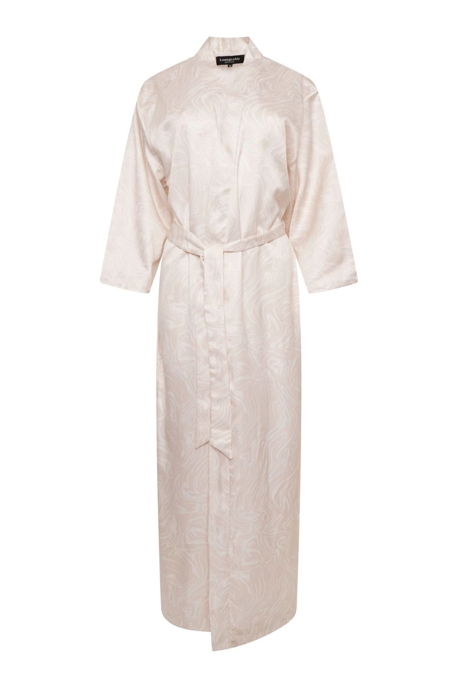 Slip into luxury with Loungeable… This long length robe features a gorgeous cream colourway and swirl detail. Finished with a self-tie belt for the perfect fit. Model is 5ft 7 and wearing size Small Shop the full Loungeable range, from glamorous robes to luxury slippers. They ve got all of your lazy-day needs covered.