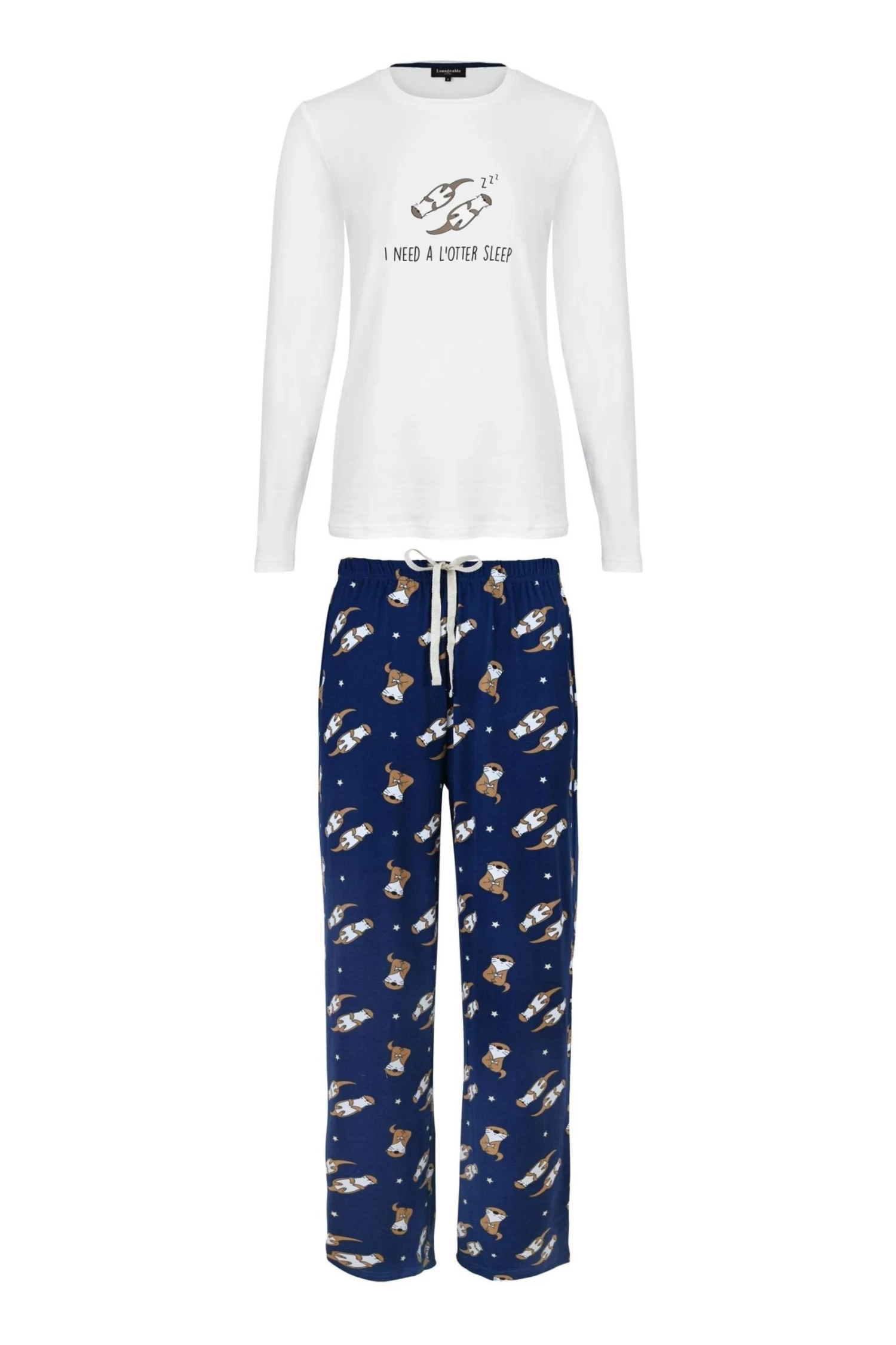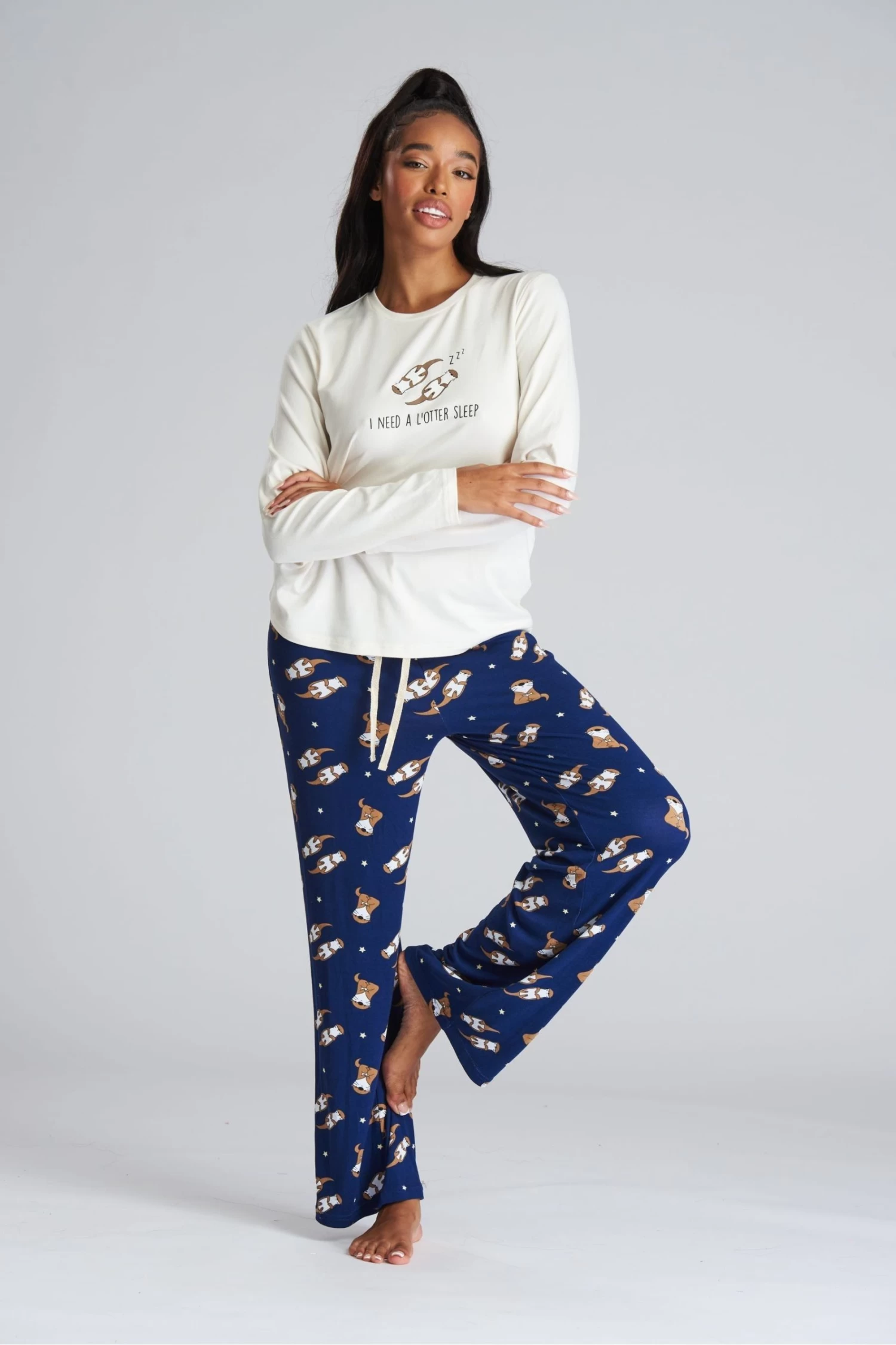 Expand your pyjama collection in the cutest way with this otter print set by Loungeable. Set includes all over otter print trousers with tie waist detail and a cute Need a l otter sleep slogan long-sleeved t shirt. Made from super-soft jersey fabric. Regular fit. Model is 5ft 7 and wears a size small. Take a look at Loungeable s full range and take your pick from more cute novelty designs, animal prints or silky satin sets. Don t forget to pair your pyjamas up with some luxurious Loungeable slippers for the perfect lazy-day attire!