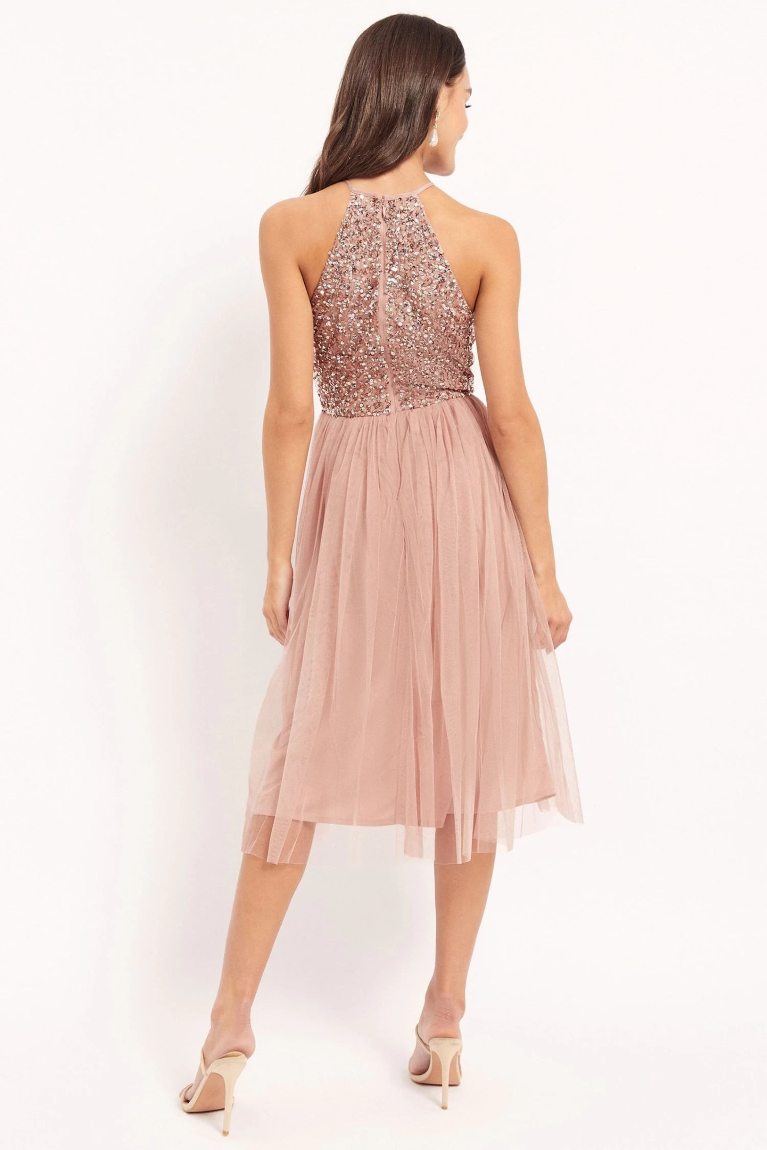 Maya Pink Halter Neck Midi Dress.Core Wearing Length: 104cm.Petite Wearing Length: 143cm.Curve Wearing Length: 116cm.