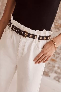 When in doubt, belt it – that’s our new-season motto. Crafted from textured black leather, this version is decorated with gold-tone eyelets for a cool cutout effect and has a sleek buckle – perfect for the relaxed trousers in your wardrobe.