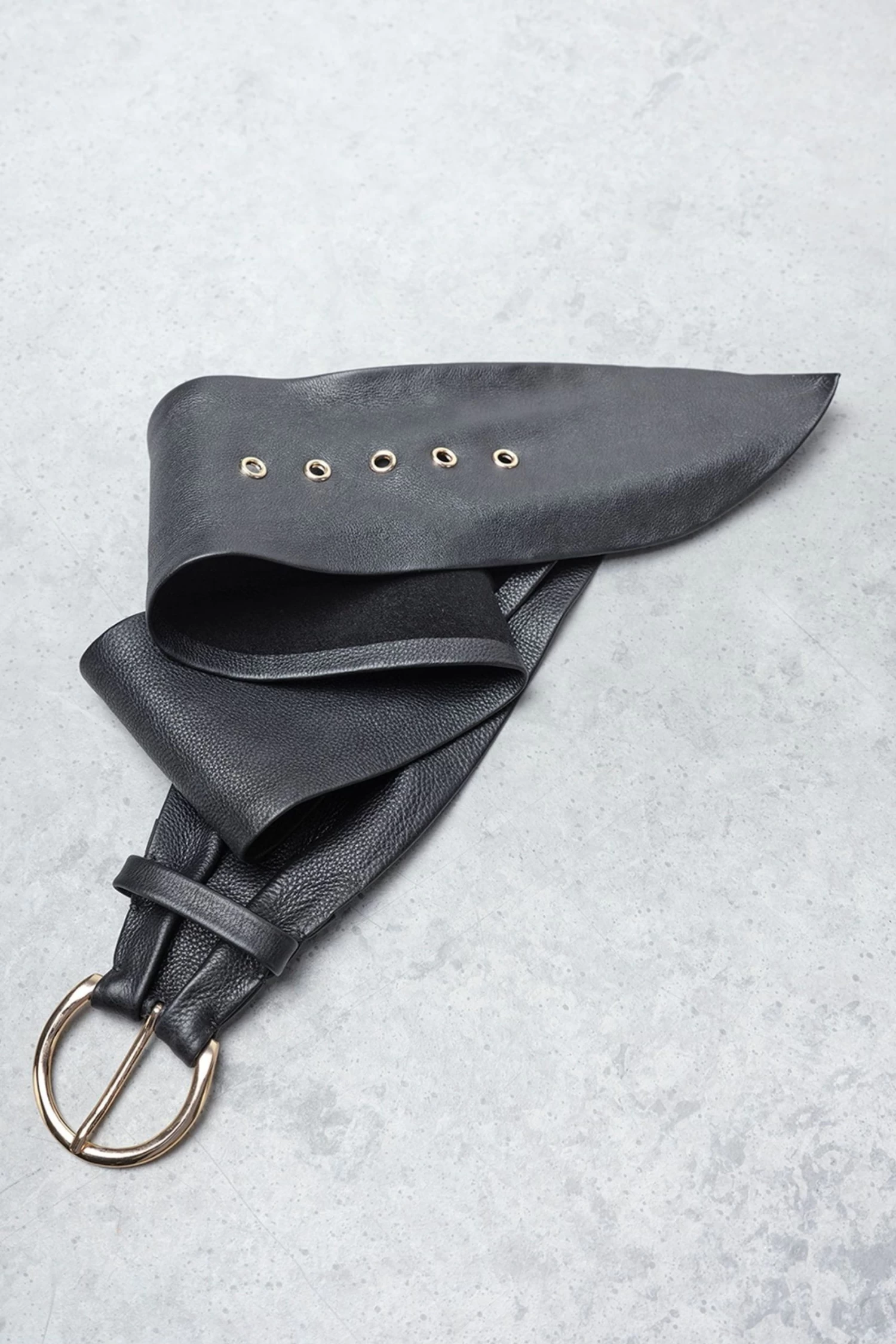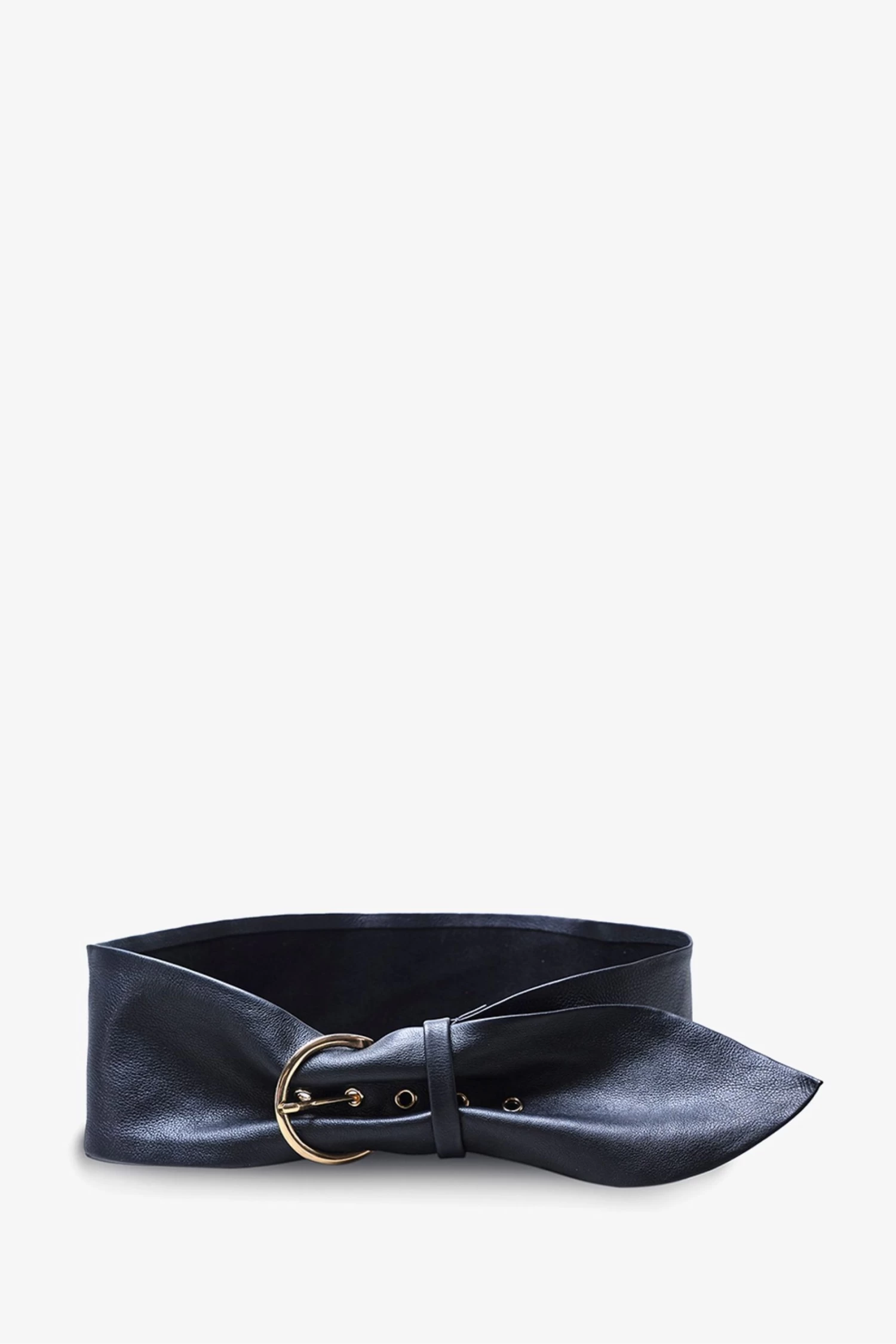 Cinch any look with this black wide waist belt, artfully crafted from butter-soft leather.