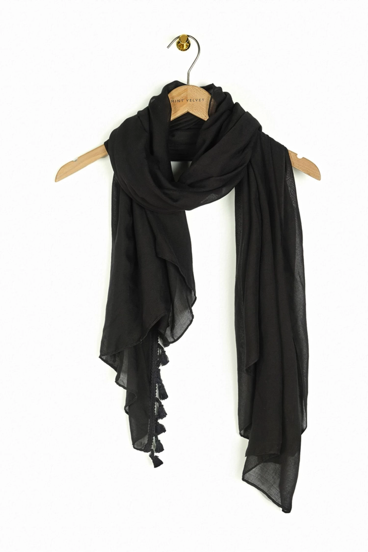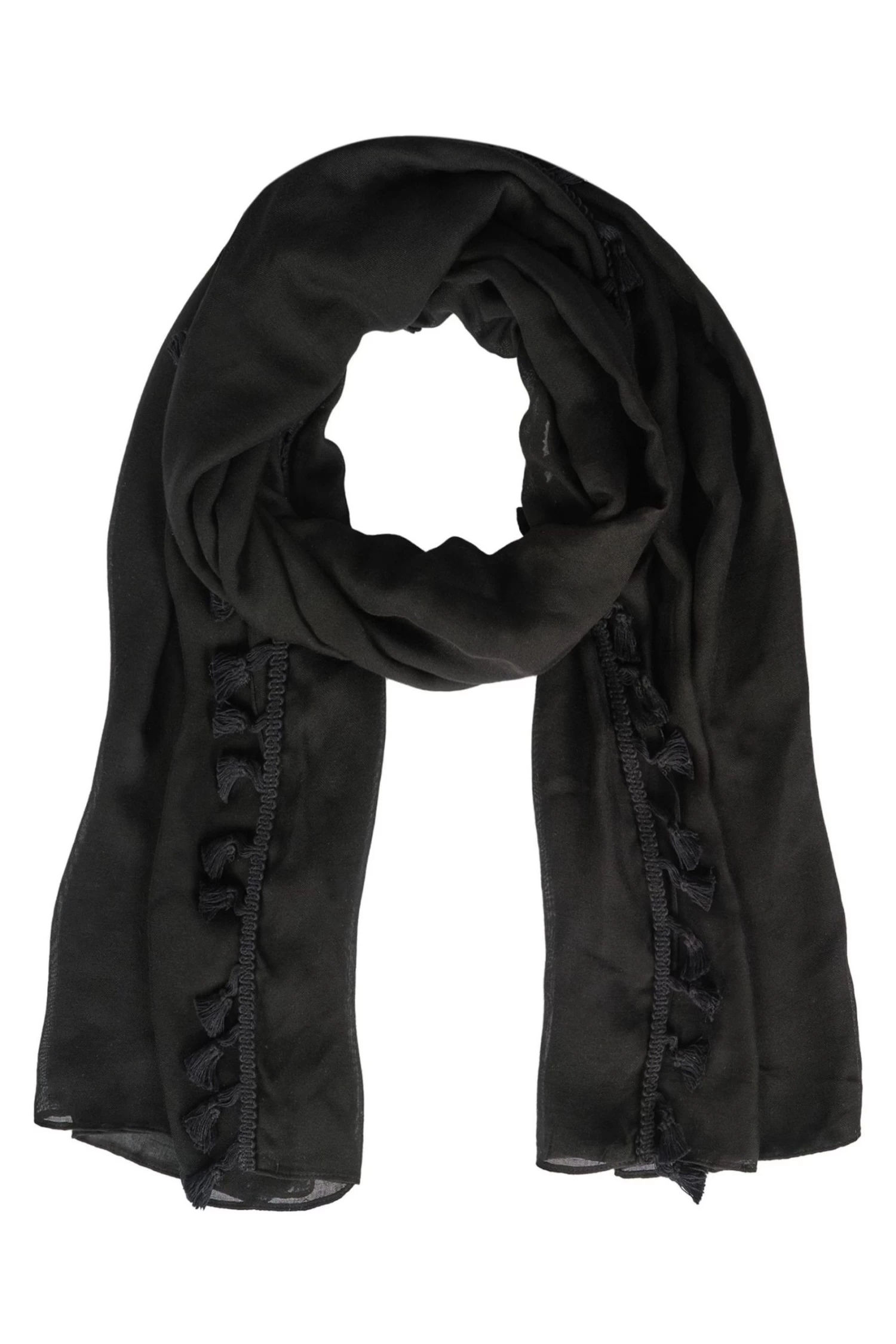 Featuring tassel detailing, this lightweight khaki scarf is perfect for in-between seasons. Wear yours over a light jacket or with a printed T-shirt and jeans.