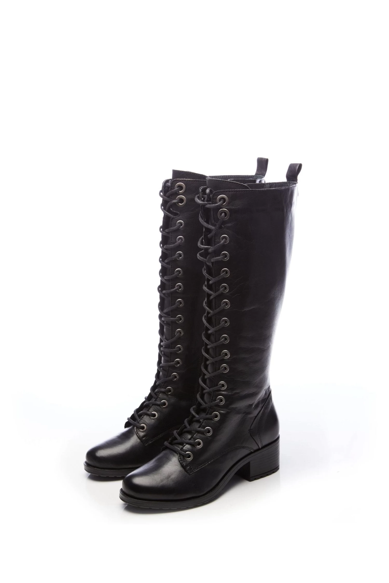 Add Hailey to your shoe collection. This lace-up leather knee-high boot features a perfectly practical block heel and an inside zip to allow for easy foot entry, meaning you can get the laces in place for the ultimate fit. Complete with a soft faux fur lining. Style with tights and a dress.