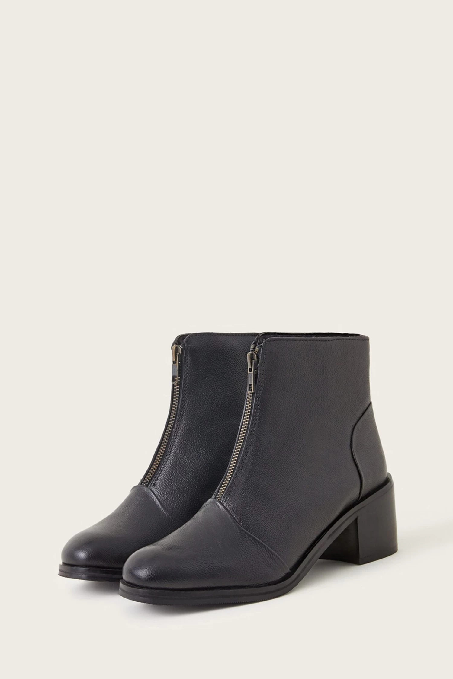 A clean style for every day, throw this pair on with both your denim jean edit and collection of midi dresses. Designed in leather, they feature a zip front and block heel for a comfortable finish.