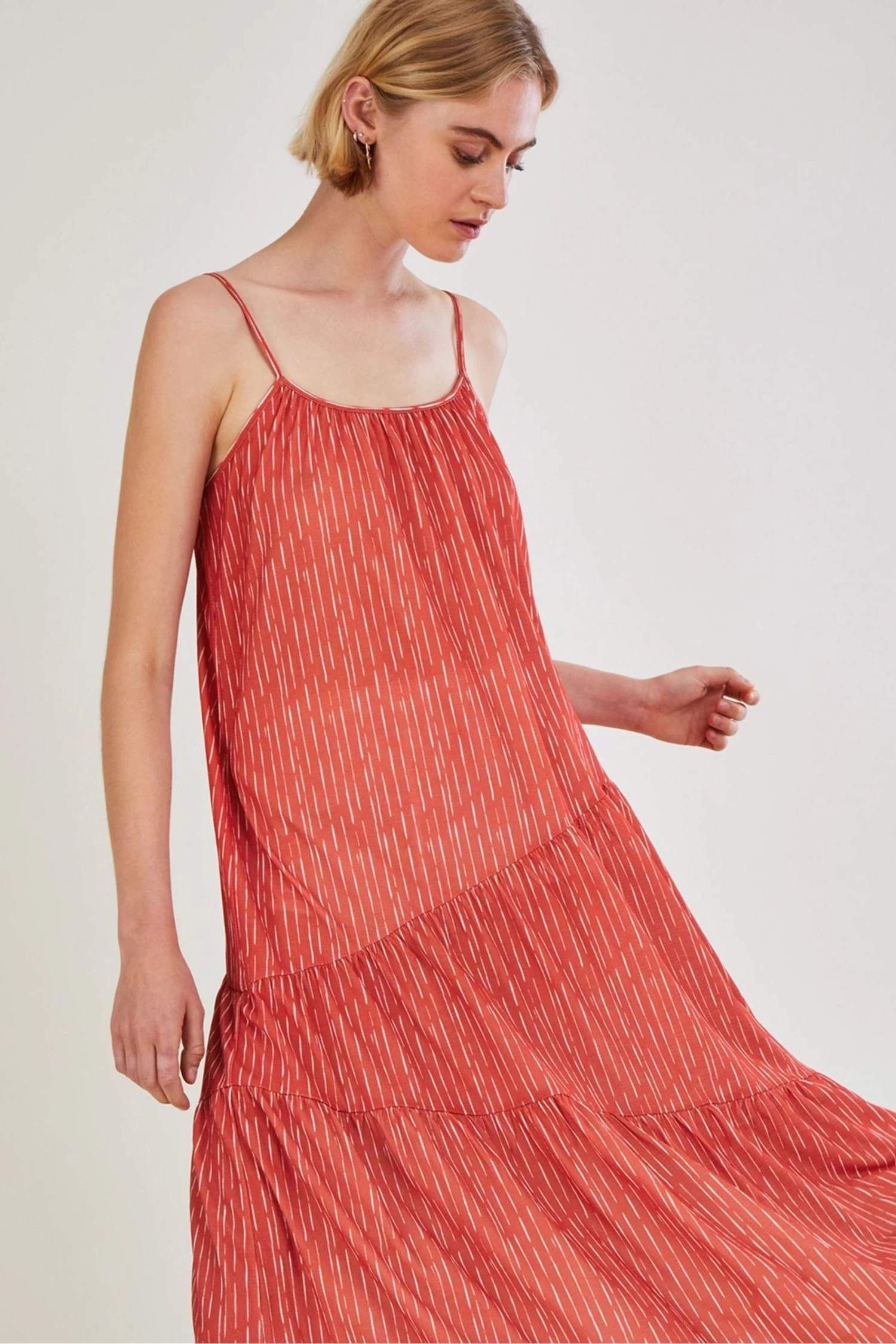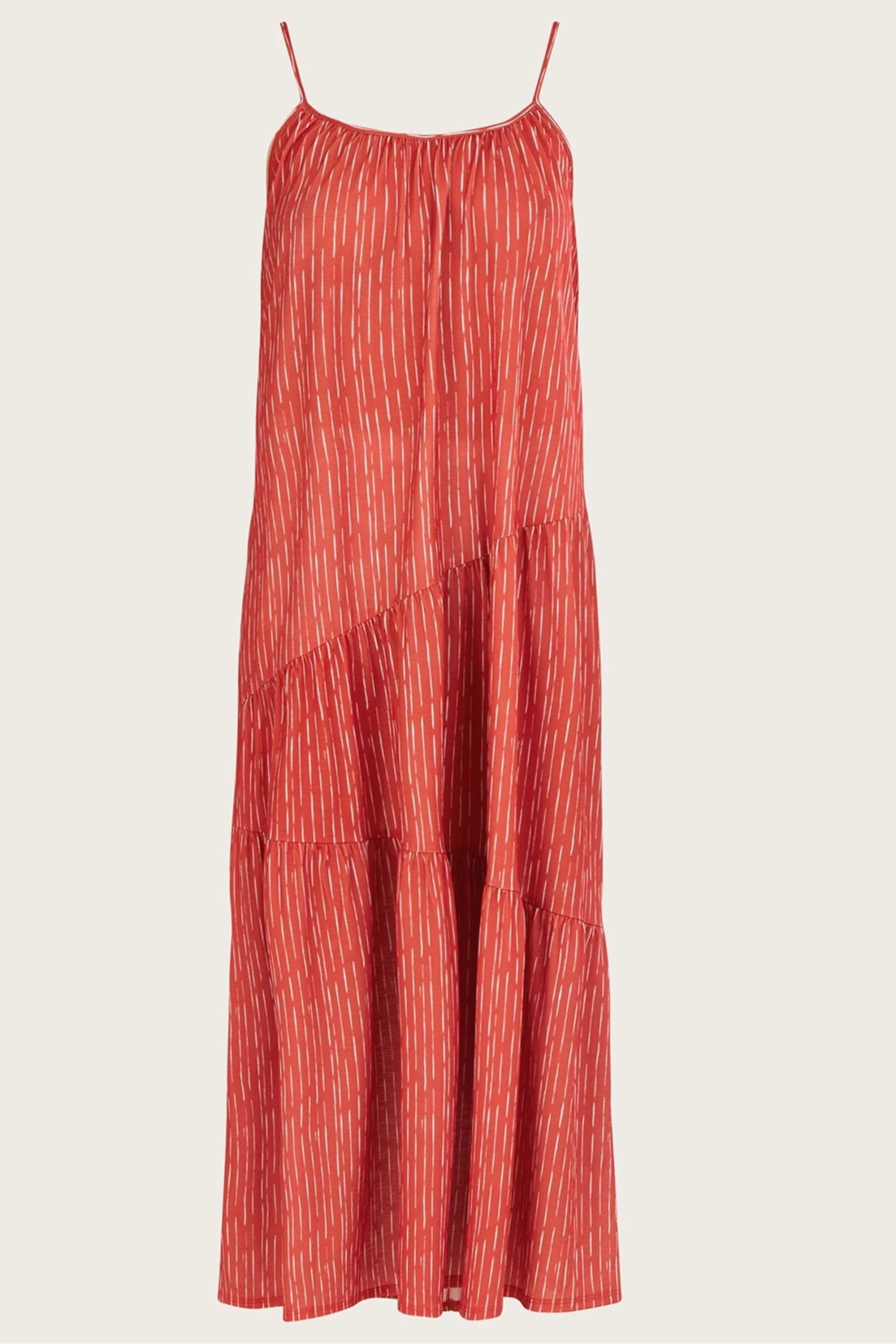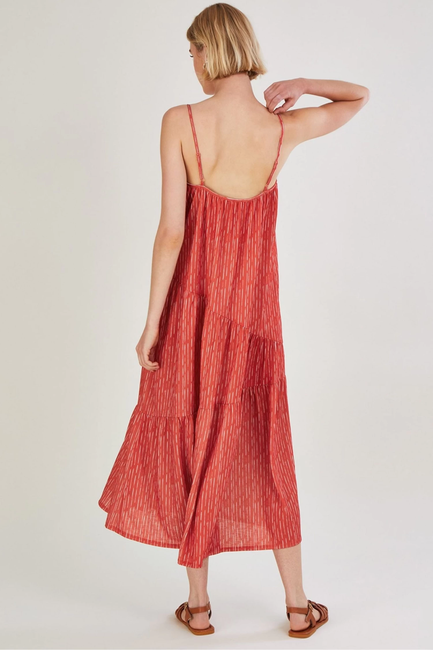 Summer scorchers call for this dress, created in a lighter-than-air jersey fabric. It boasts a relaxed fit and stripe print, with tiering to the bottom of the midi-length skirt that’ll float with you around the garden.