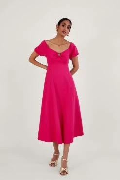 Stress less about last-minute styling with Katie in your collection. Her more plain design works alongside the fit-and-flare silhouette to provide an option for any occasion, with short puff sleeves and a ring detail to finish. Available in blue or pink, style with metallic heels and a matching clutch to style it through the end-of-year celebrations. Just one of our steps towards a future for sustainable fashion, we introduce S.E.W: our commitment to using more eco-conscious materials in our ranges. This capsule collection is created using fabrics that are both kinder to the planet and have a reduced environmental impact. You’ll see blends of organic and better-sourced cotton, viscose from more responsibly grown forests and recycled polyesters made from post-consumer waste.