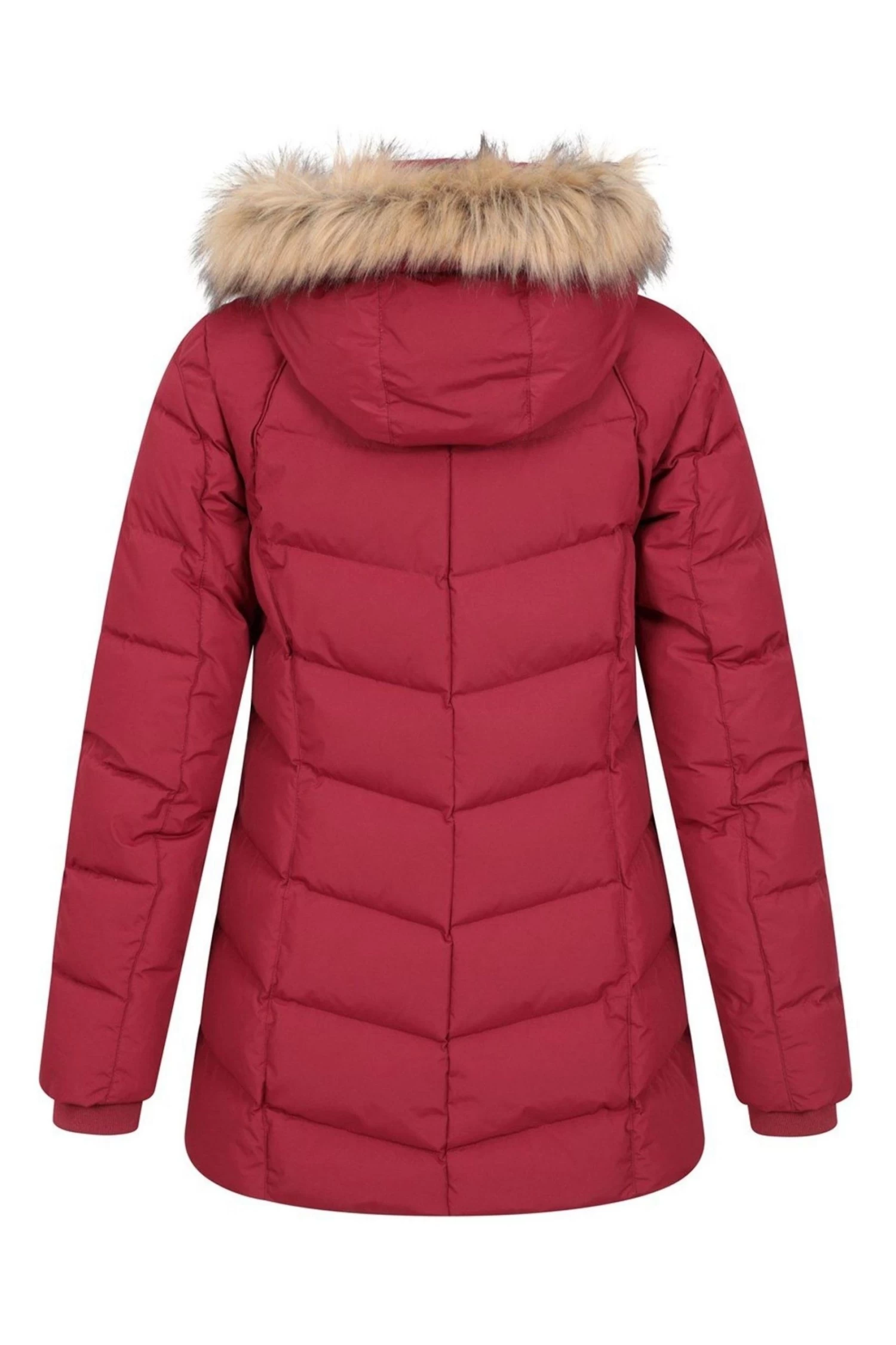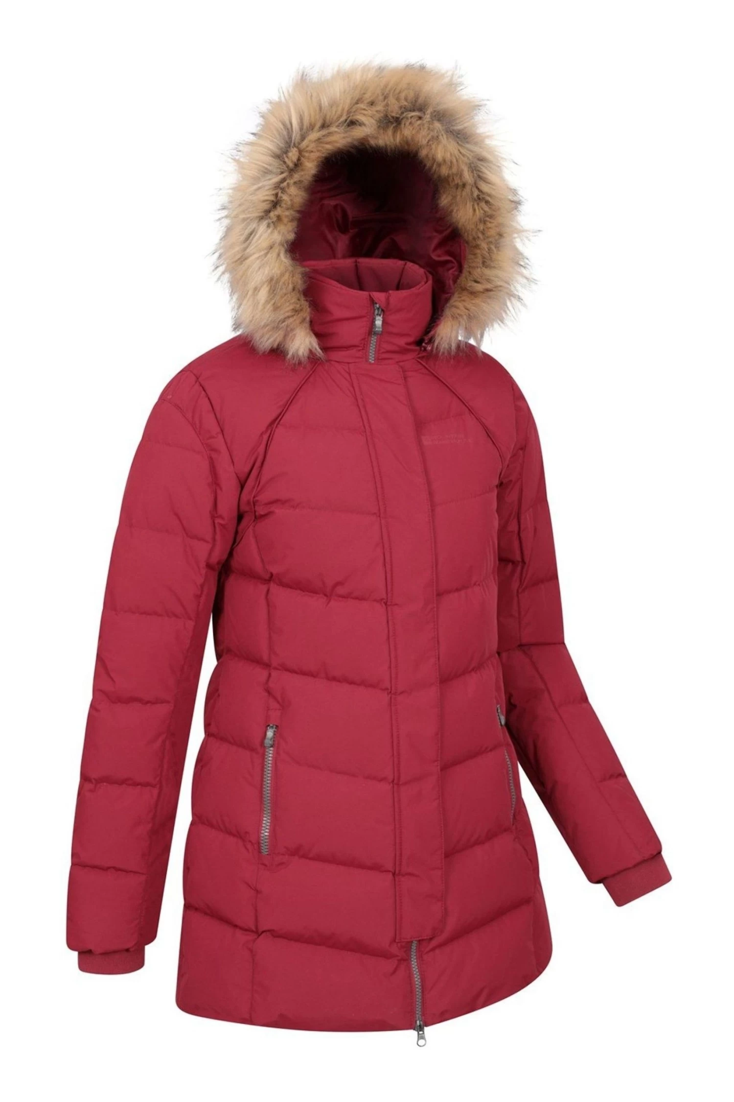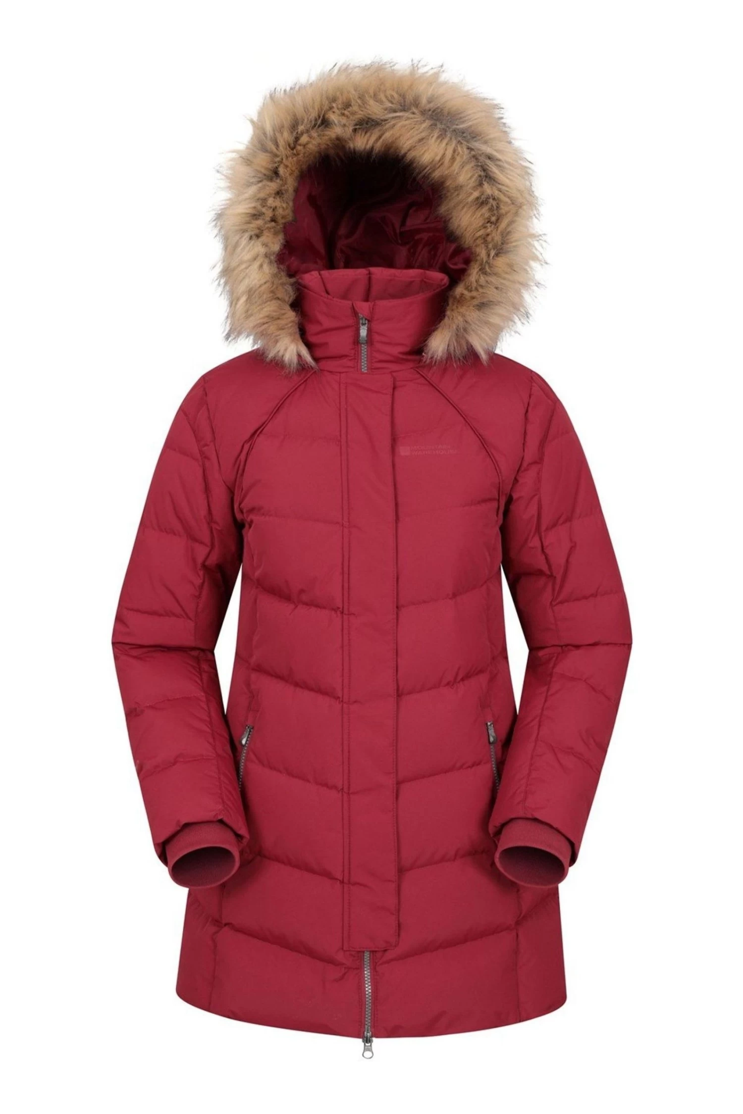 The Isla II Down Jacket with longer length is the perfect addition to your winter wardrobe. Extremely warm with a temperature rating of -40 degrees and a detachable hood with faux fur trim. Multiple security pockets and storm flaps for added protection. Water resistant – Treated with Durable Water Repellent, droplets will bead and roll off the fabric Zipped pockets – For convenient and safe storage of your belongings.