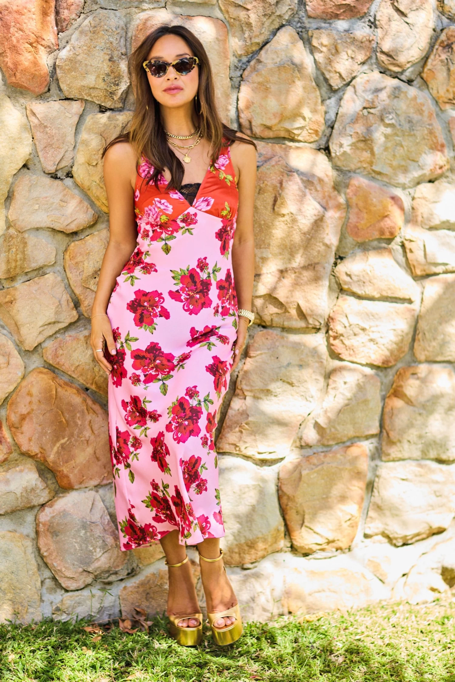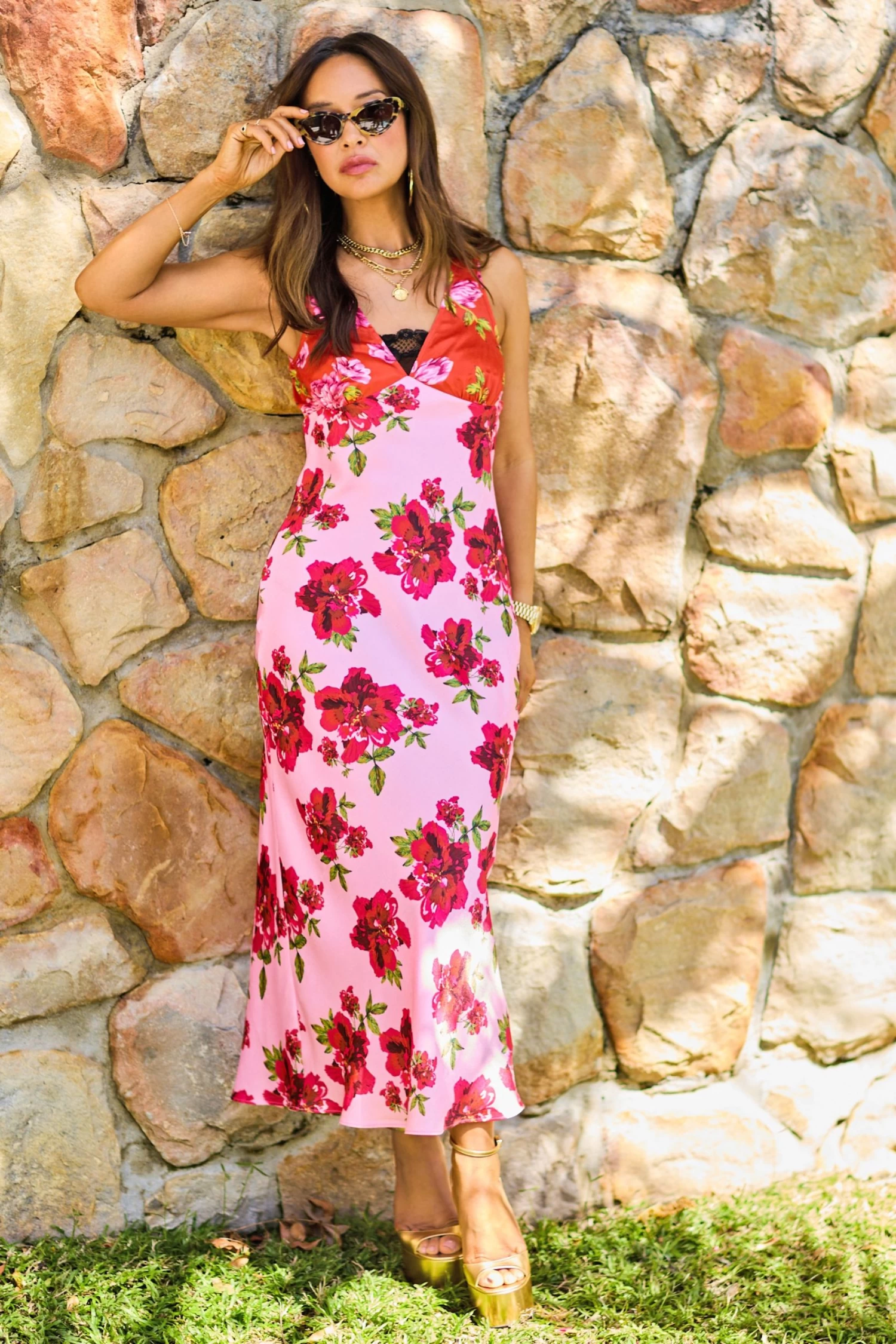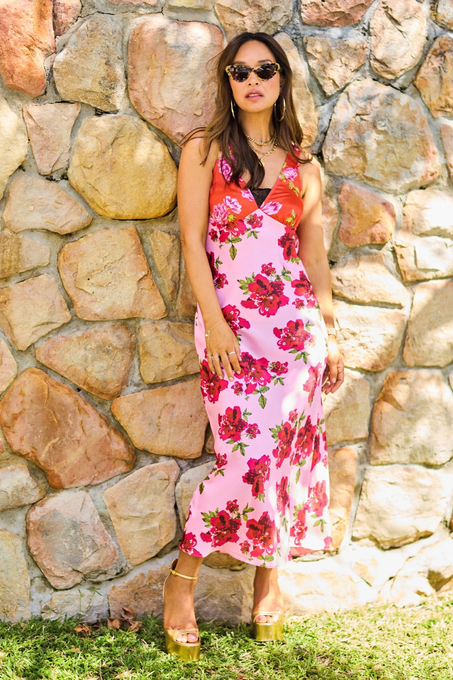 Slip into style this summer with our pretty dress from Myleene Klass. Cutting a sleek slip silhouette, the lightweight satin dress is midi length and features a pretty lace insert detail on the v-neck. Perfect for days and evenings in the sun, team this elegant dress with simple sandals and gold jewellery.