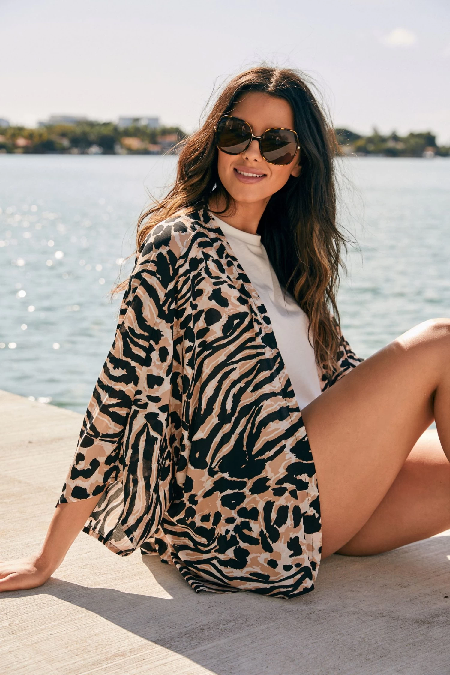 This beautifully printed cover-up has a bold and striking design. Made from a lightweight viscose that will look great both as a summer layer or on the beach.
