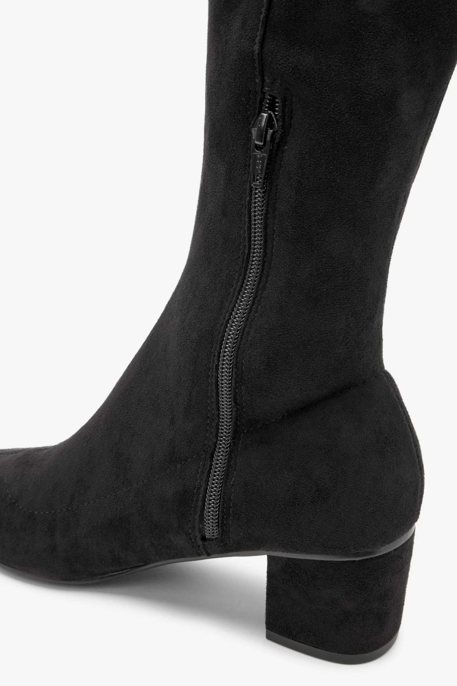 Next Black Forever Comfort Sock Block Heel Knee High Boots
