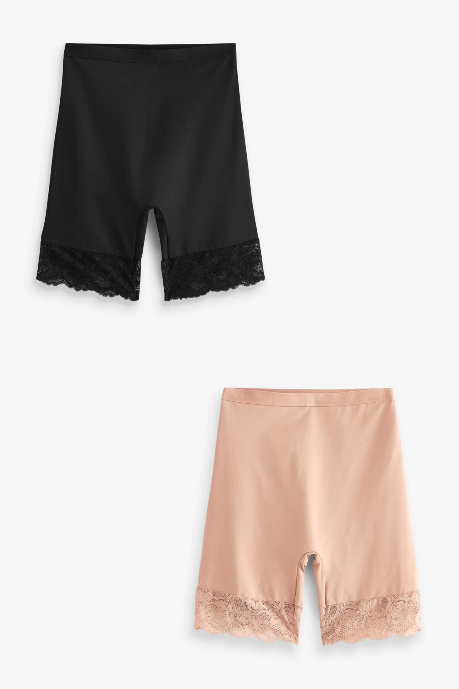 2 x Knickers Main 77% Nylon, 23% Elastane. Gusset 100% Cotton.