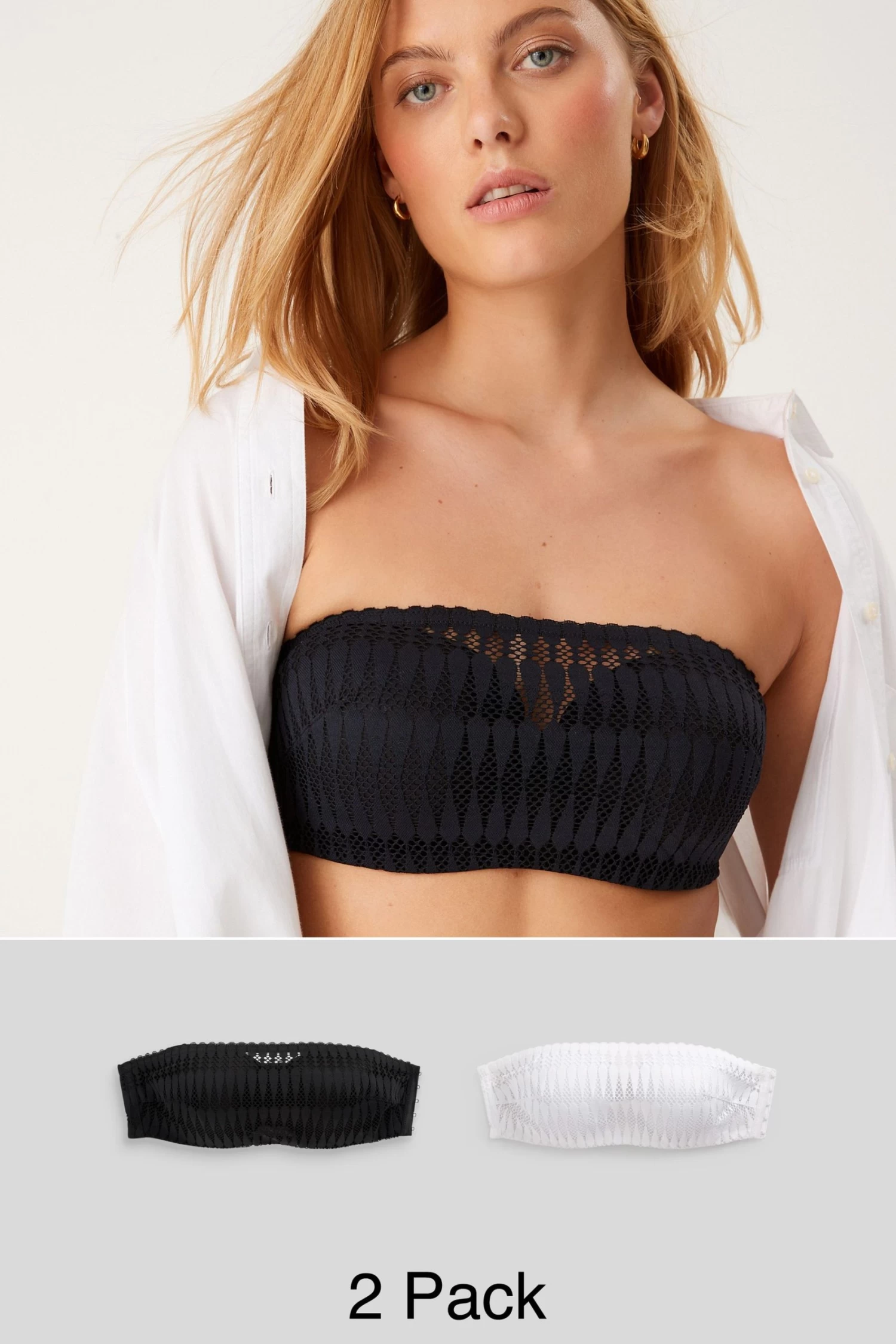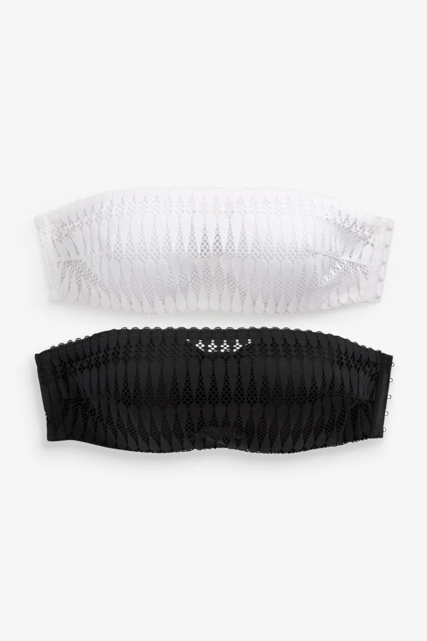 Next Black/White Geometric Lace Strapless Bandeau Bras 2 Pack